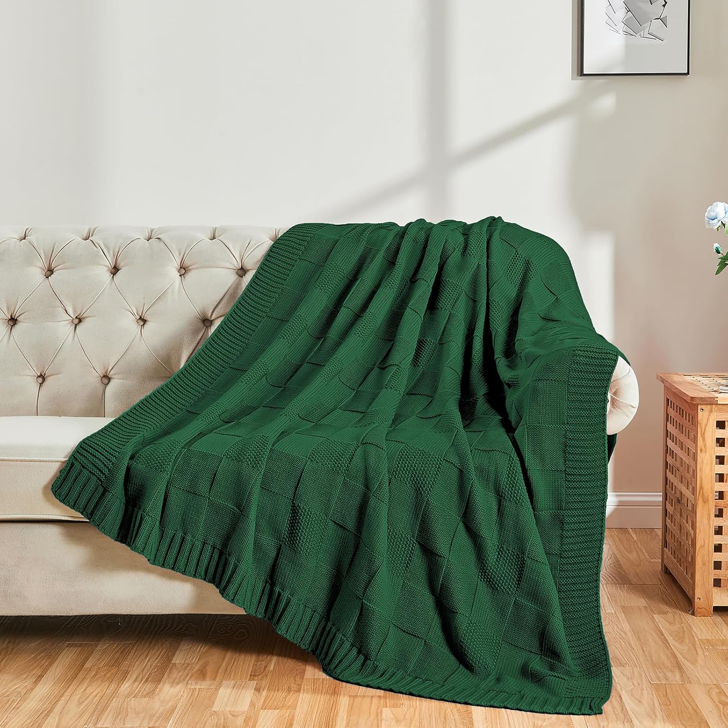 CozeCube Knit Throw Blanket, Green Checkered Throw for Couch, Soft Cozy Warm Knitted Blanket for Bed Sofa Living Room, 60"X80", Forest Green