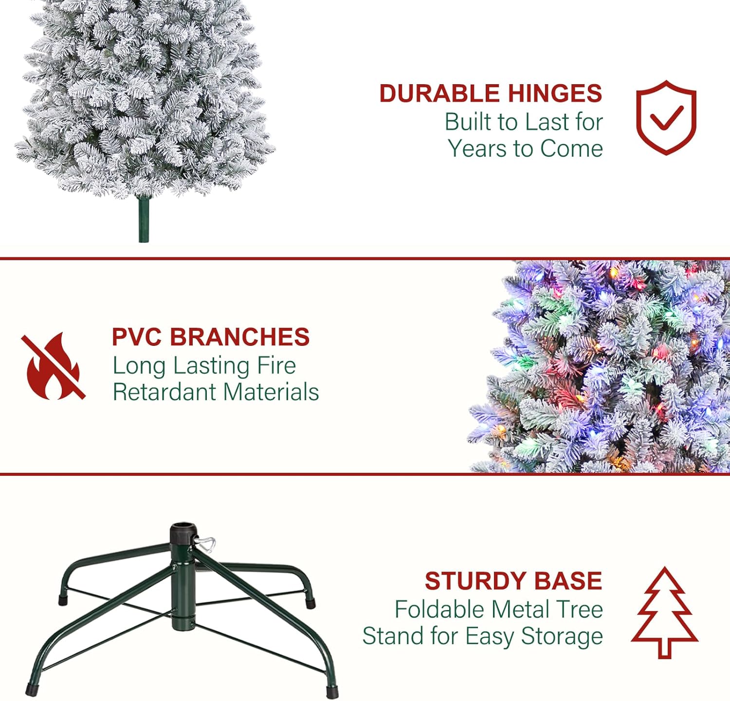 • NATURAL APPEARENCE & FULL LOOK: Measures 7.5 feet tall, 33 inches diameter at the base. Featuring snow sprinkled branch tips trimmed with pine cones and clusters of red berry creates a wintry feel, 792 branch tips for a full and life-like look, this slim flocked Christmas tree can be easily fluffed and shaped for a splendid and natural display and also provides abundant space to showcase your favorite ornaments.