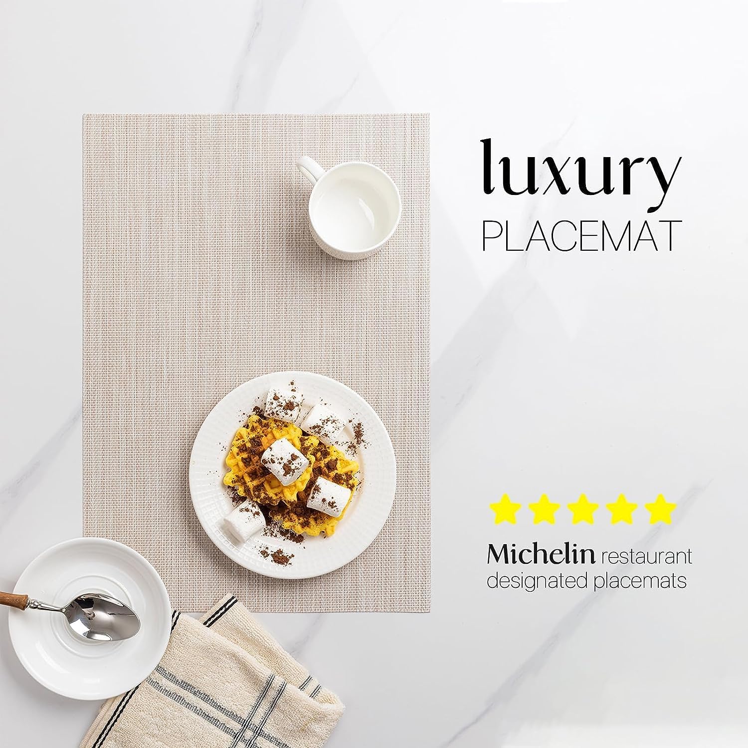 • PERFECT FOR INDOOR AND OUTDOOR:The wipeable placemat is two yarns over two, resulting in a quieter,less textural surface.The neutral color scheme and the classic size (about 12*17 inch)makes the whole table elegant and stylish full of texture!