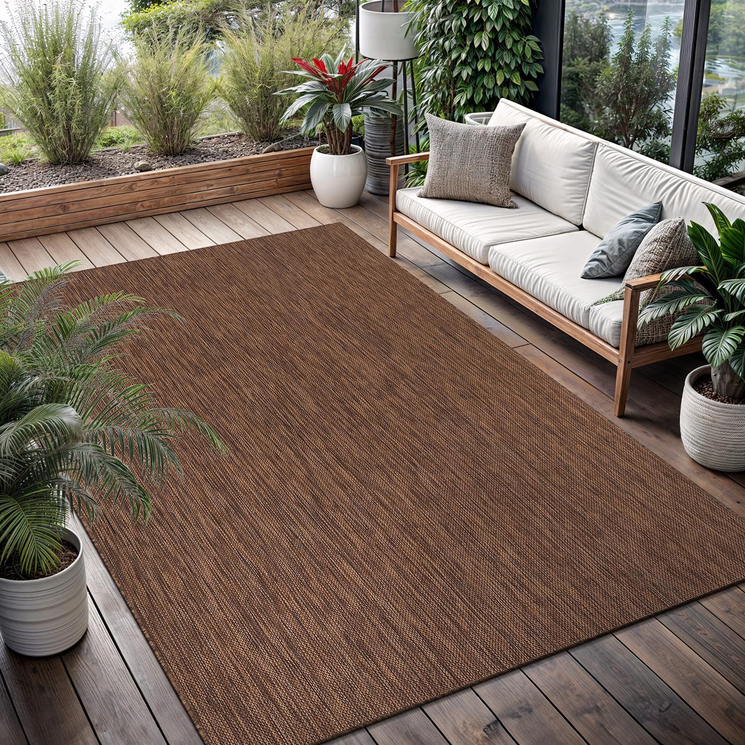 Washable Indoor Outdoor Rug 9x12 Weather Resistant Area Rugs Modern Solid for Porch Deck Balcony Backyard Patio Outside Carpet (9 X 12 Gold Brown)