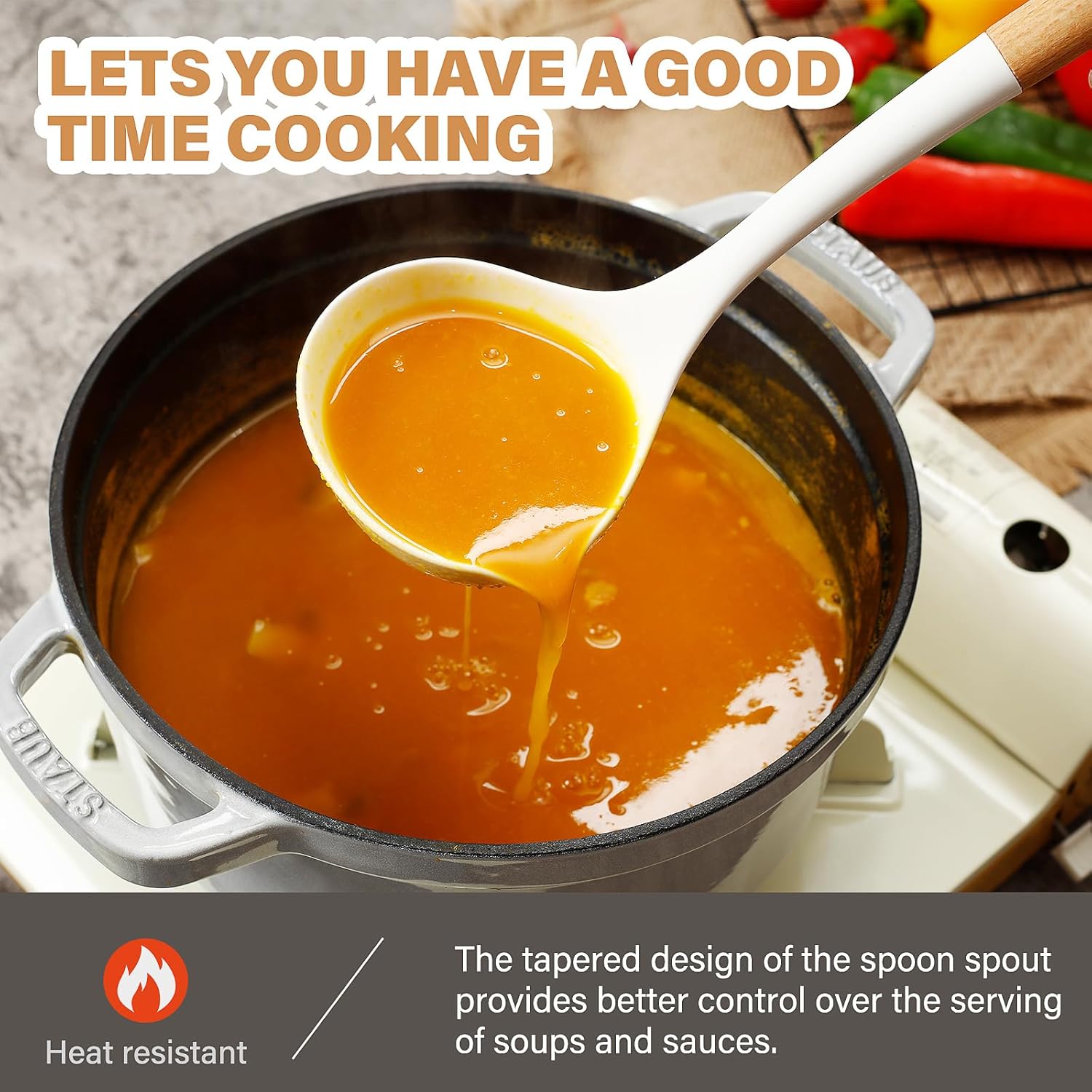 • HEAT RESISTANT, GREAT FOR NON-STICK PANS: Our utensil sets can handle temps up to 446°F without melting. The soft silicone won't scratch non-stick surfaces. The handles are firmly attached. They're durable, making cooking easier and helping your cookware last longer