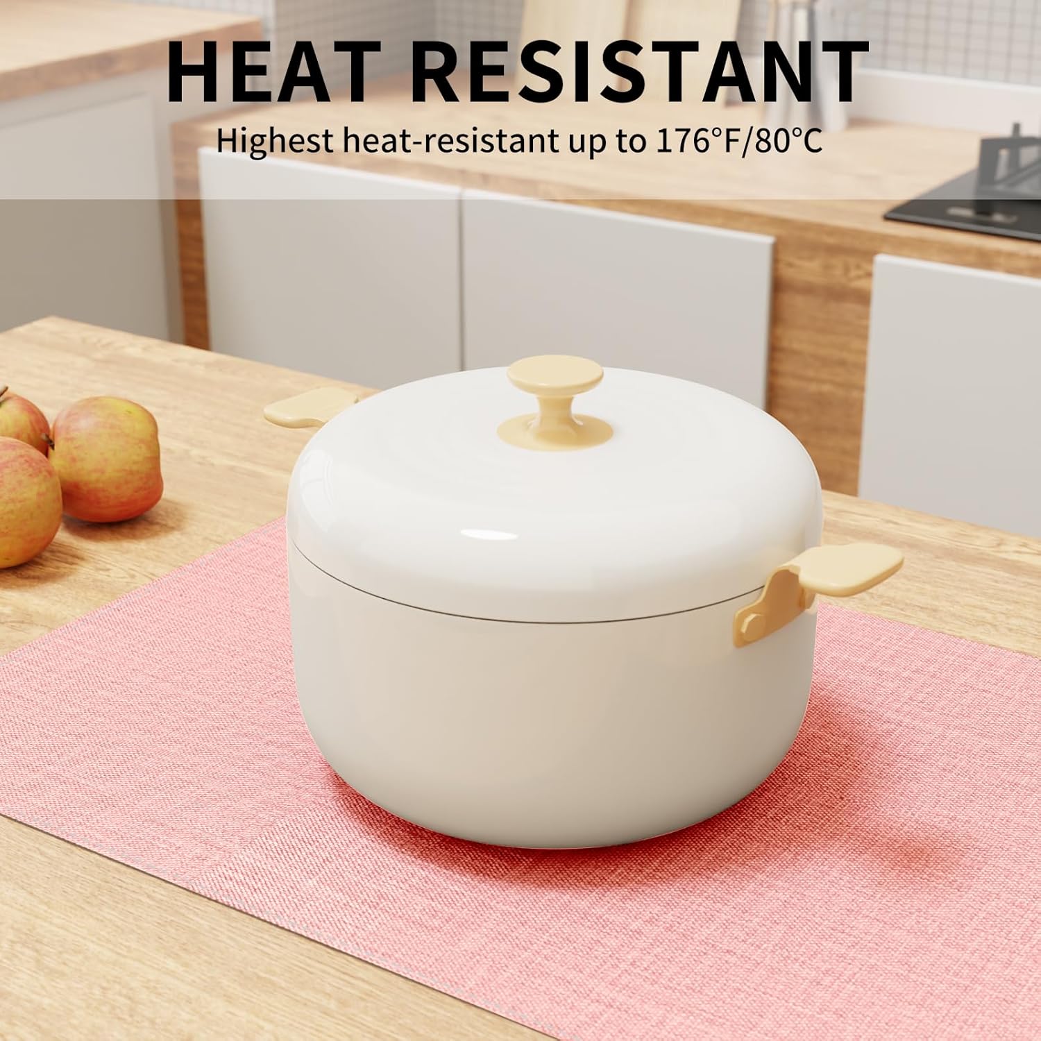 • DURABLE & THICK: Each placemat has double layers and both sides are usable. It's thick enough to protect the table form hot plates, stain, scratches and some water droplets spilled from tableware. NOT waterproof.