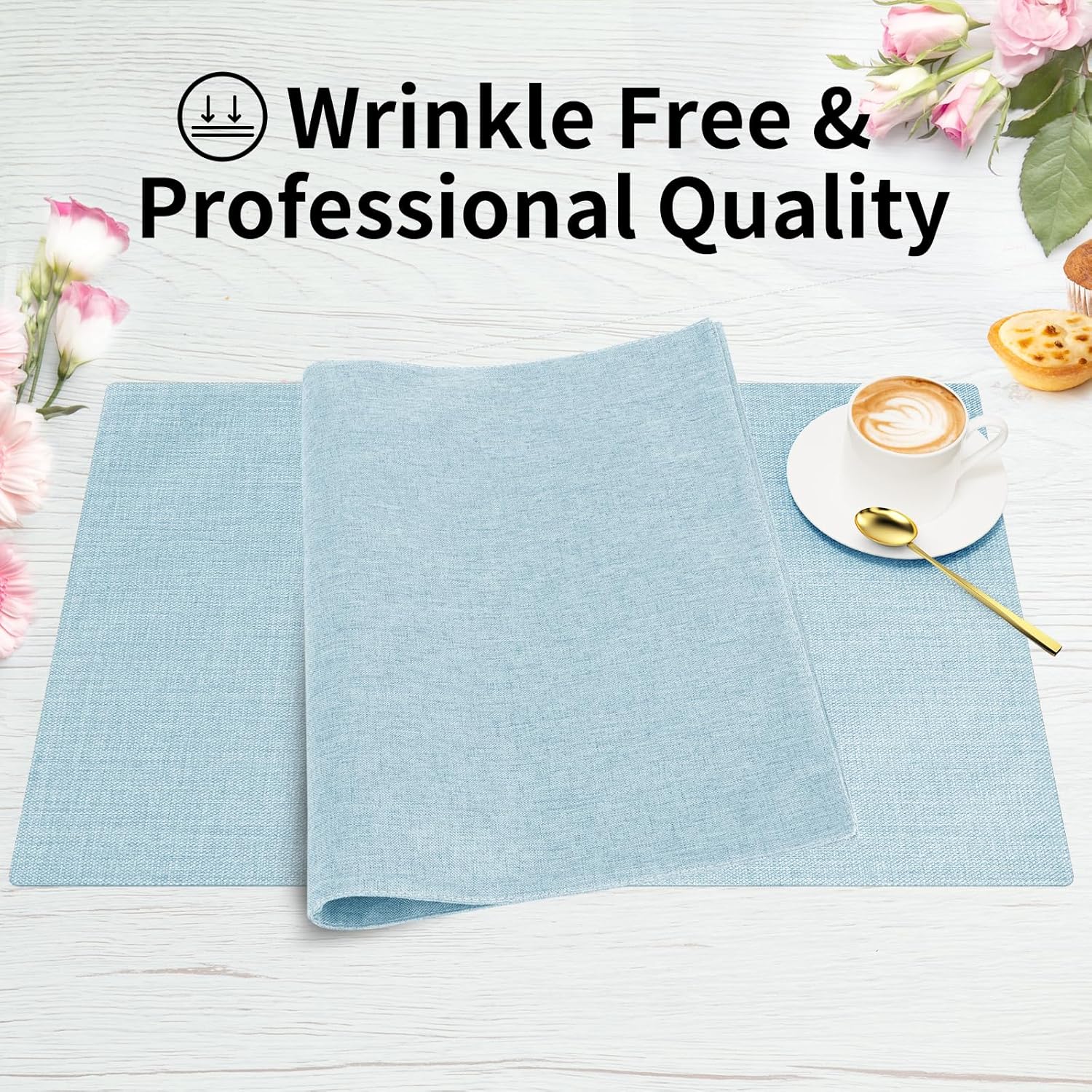 Cloth Placemats, Set of 4 Heat-Resistant Cotton Linen Blend Double Layered Machine Washable Place Mats, Wrinkle Free Thick Fabric Dining Table Mats for Indoors & Outdoors (Sky Blue, 4)