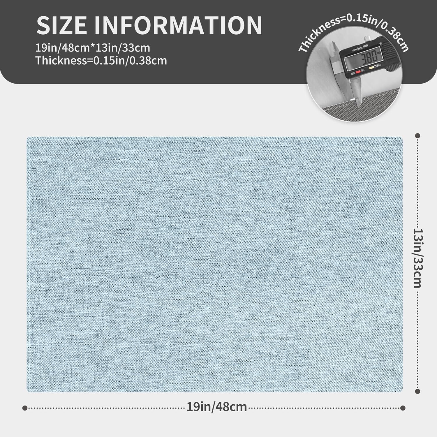 • DURABLE & THICK: Each placemat has double layers and both sides are usable. It's thick enough to protect the table form hot plates, stain, scratches and some water droplets spilled from tableware. NOT waterproof.