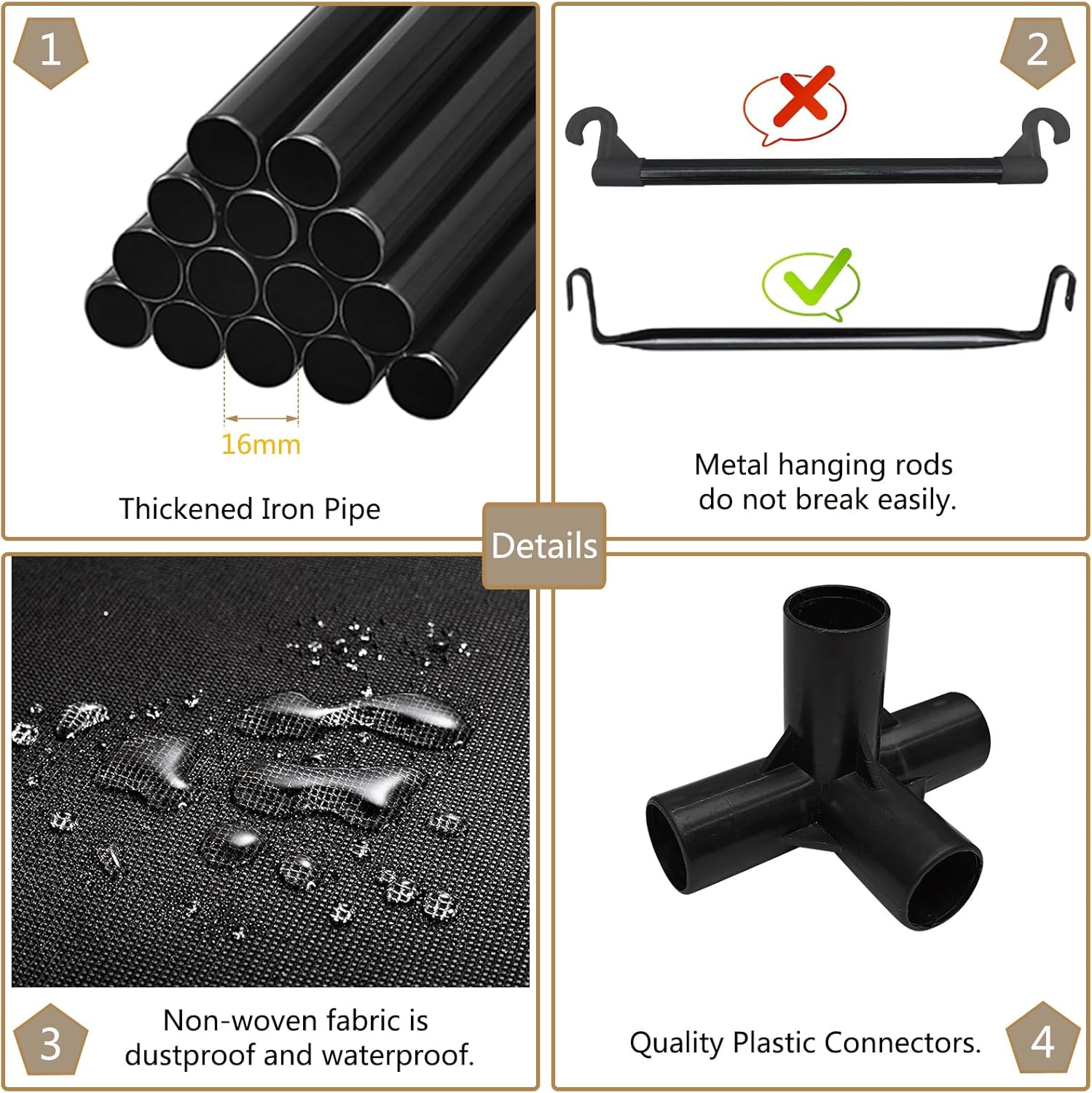 • 【Dustproof,Resistant to Dirt】High quality non-woven fabric cover,so that your clothes away from dust.Dark colored cover can ensure the practicality of the wardrobe,so it can be used for many years.