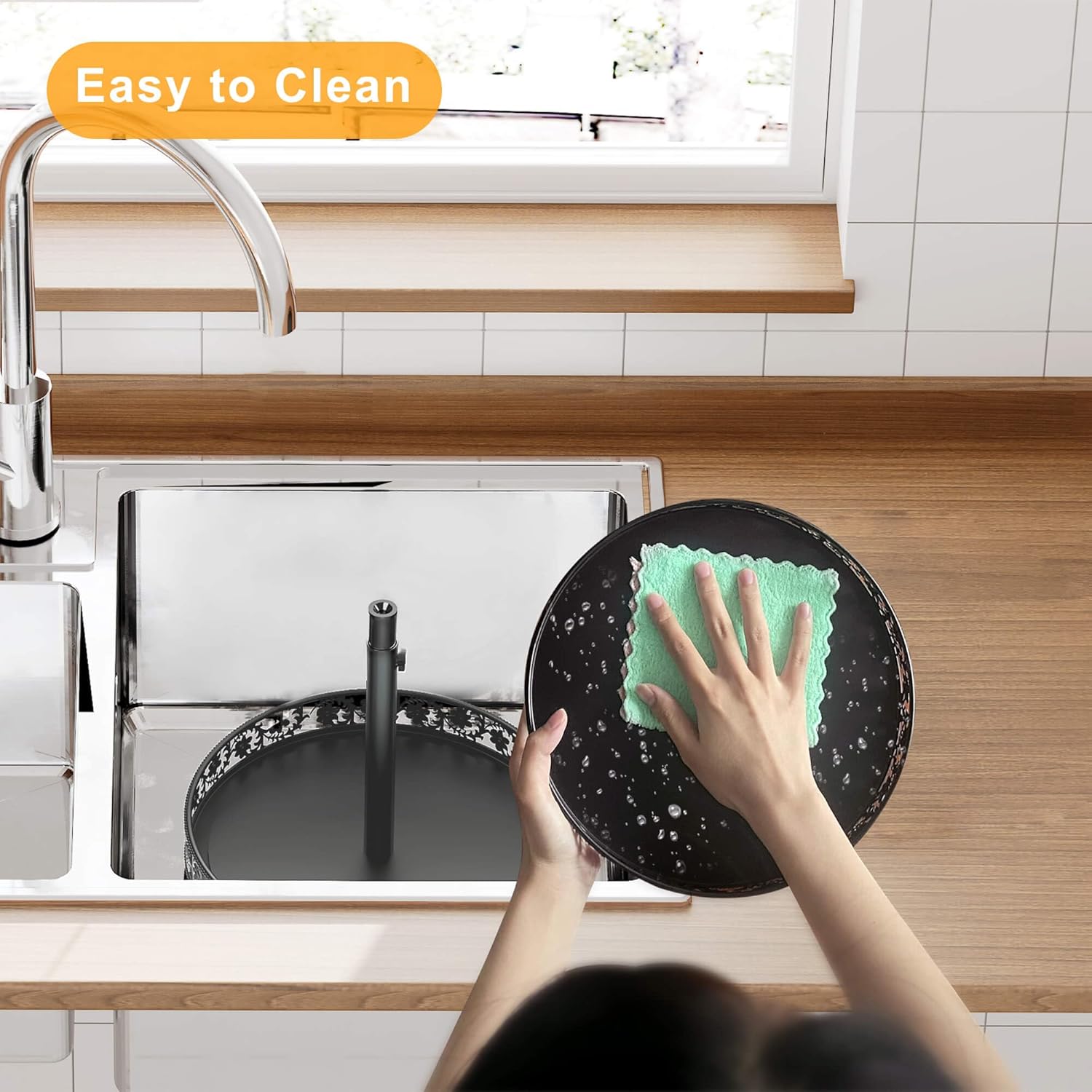 • 【Durable Material and Easy Cleaning】The heavy-duty lazy susan organizer is made of high quality rustproof and waterproof metal.The 2 tier lazy susan is stronger and more durable than plastic black lazy susan spice rack organizer. The two tier lazy susan spice rack's wear-resistant and abrasion-resistant coating ensures long-term use and easy to clean.