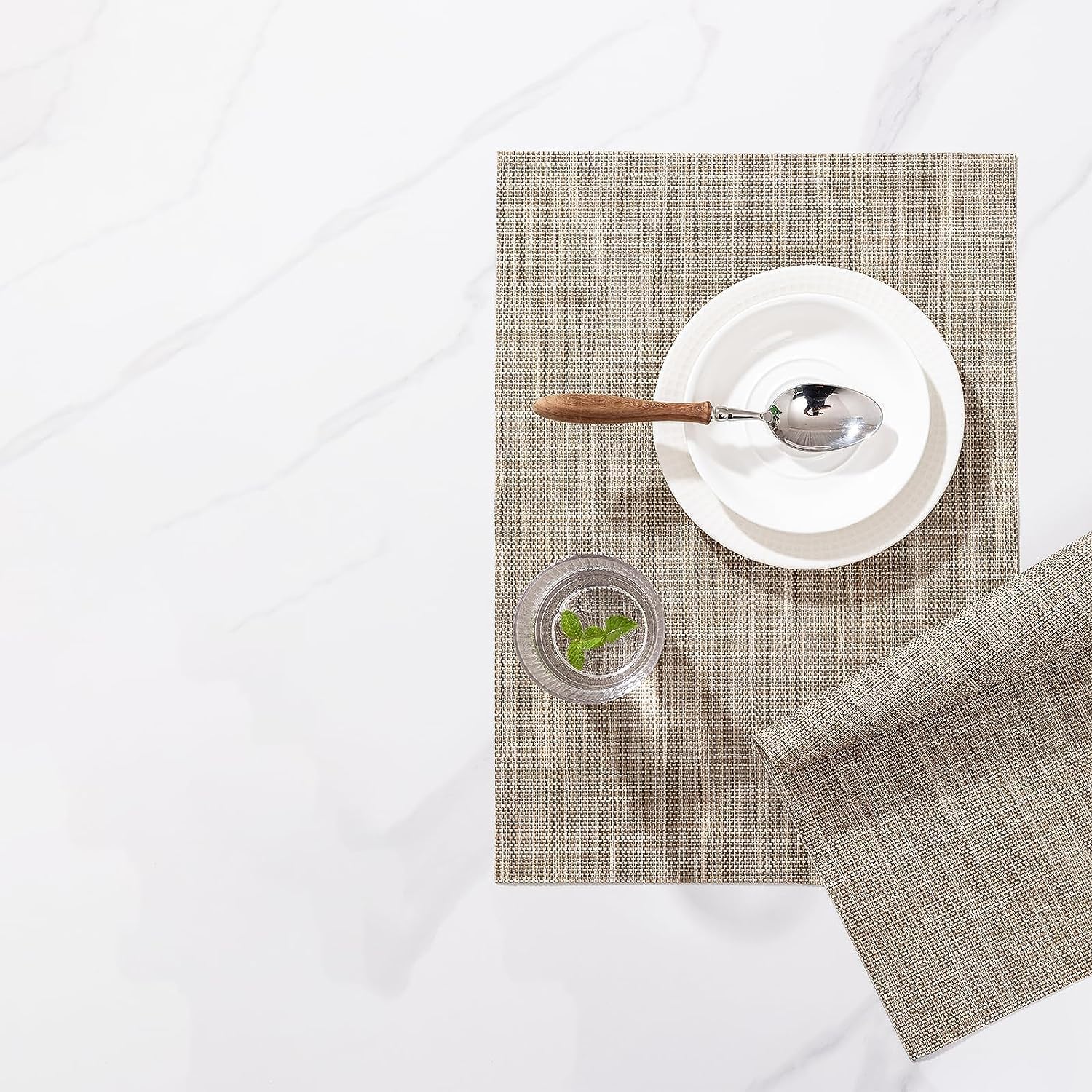 • PERFECT FOR INDOOR AND OUTDOOR:The wipeable placemat is two yarns over two, resulting in a quieter,less textural surface.The neutral color scheme and the classic size (about 12*17 inch)makes the whole table elegant and stylish full of texture!