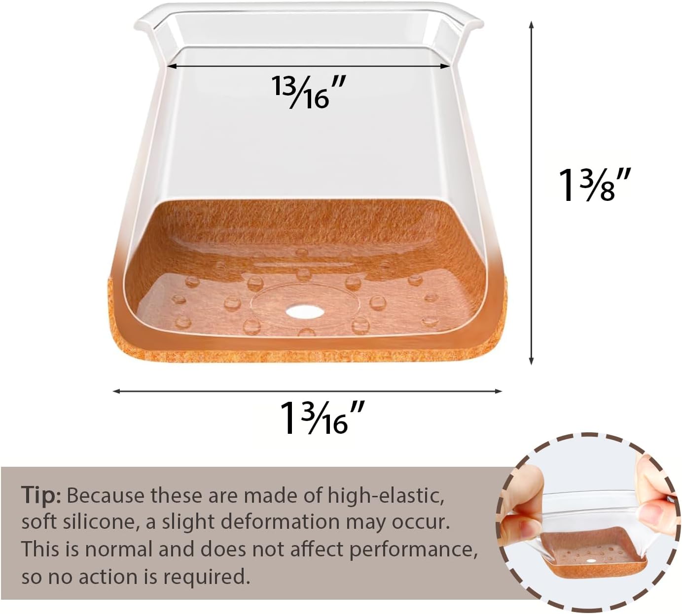 • 【Stretchable Fit for Multiple Sizes】- Medium Size chair leg floor protectors feature a tapered design for a snug fit. Suitable for square legs with a side length of 13/16" to 1" (20–26 mm).