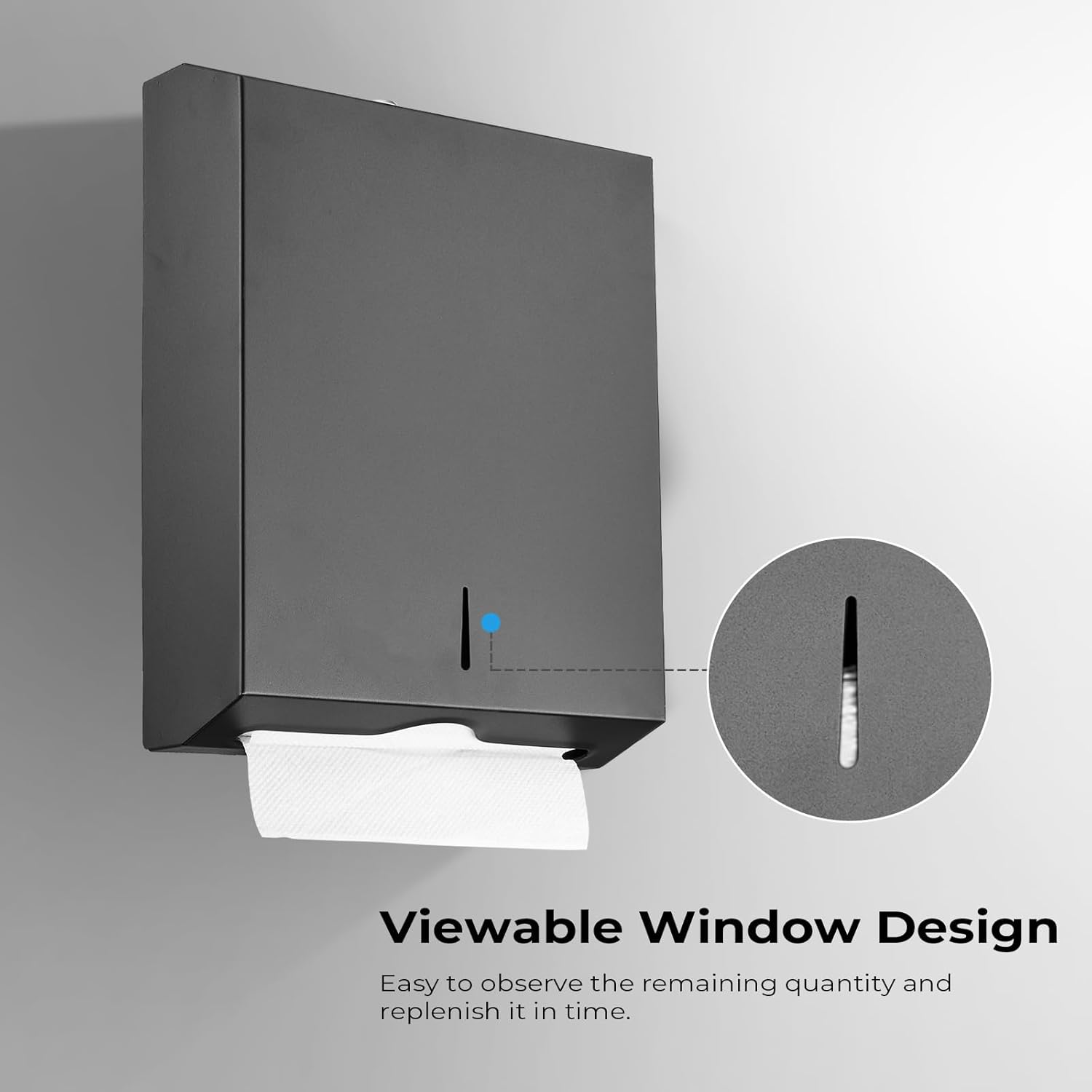 Paper Towel Dispenser Wall Mount - Multifold Trifold Paper Towel Dispensers, Large Capacity Stainless Steel Tissue Holder, Suitable for Bathrooms and Public Places Black