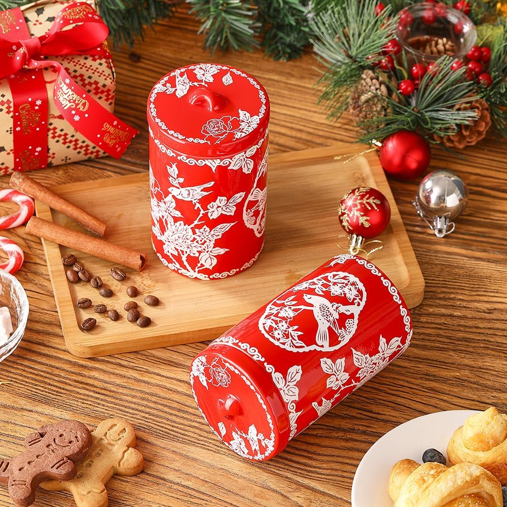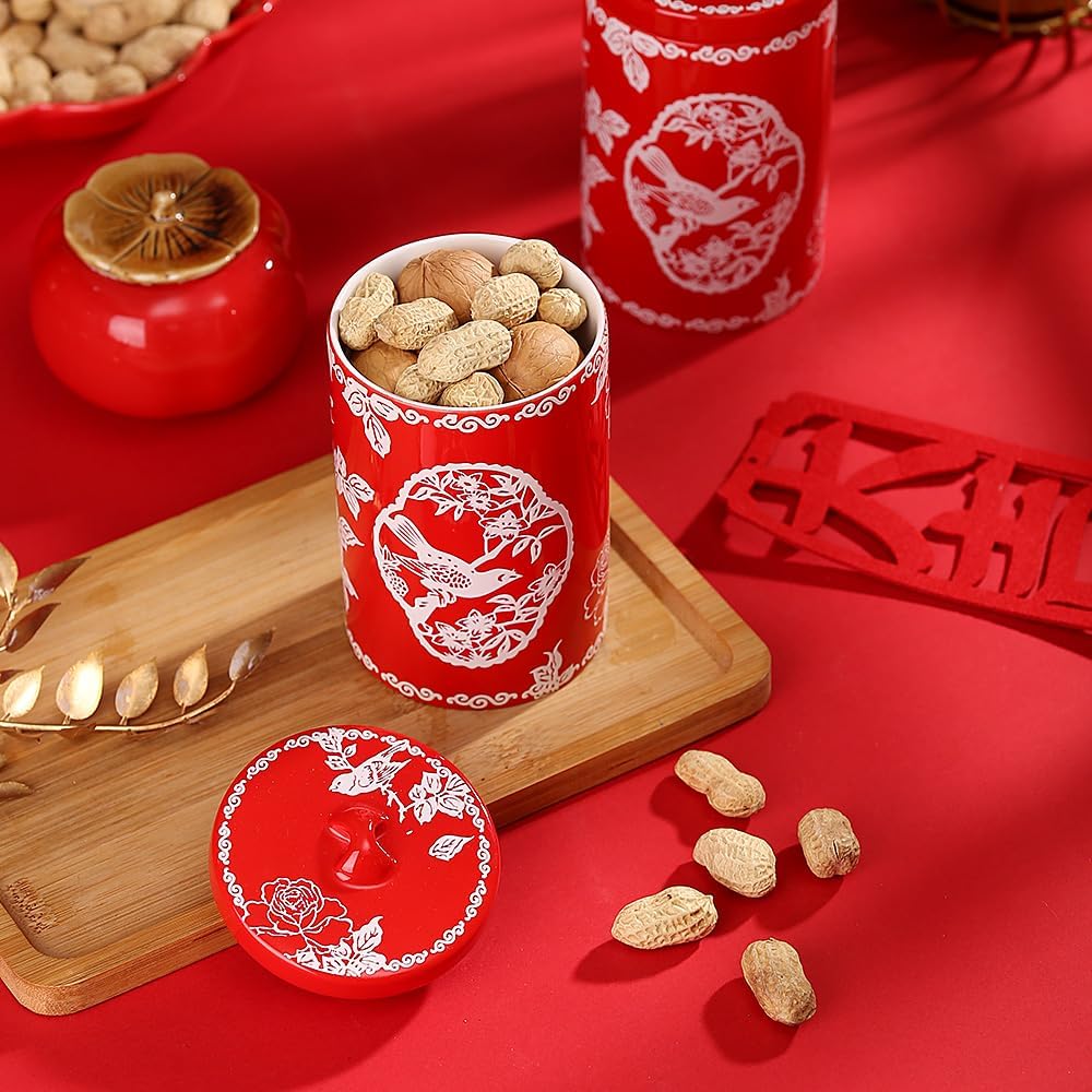 • FESTIVAL STYLE:Red with white color with vivid pattern gives a lively and refreshing feeling that never goes out of date. The porcelain canister set is a gorgeous decor to your kitchen and home.