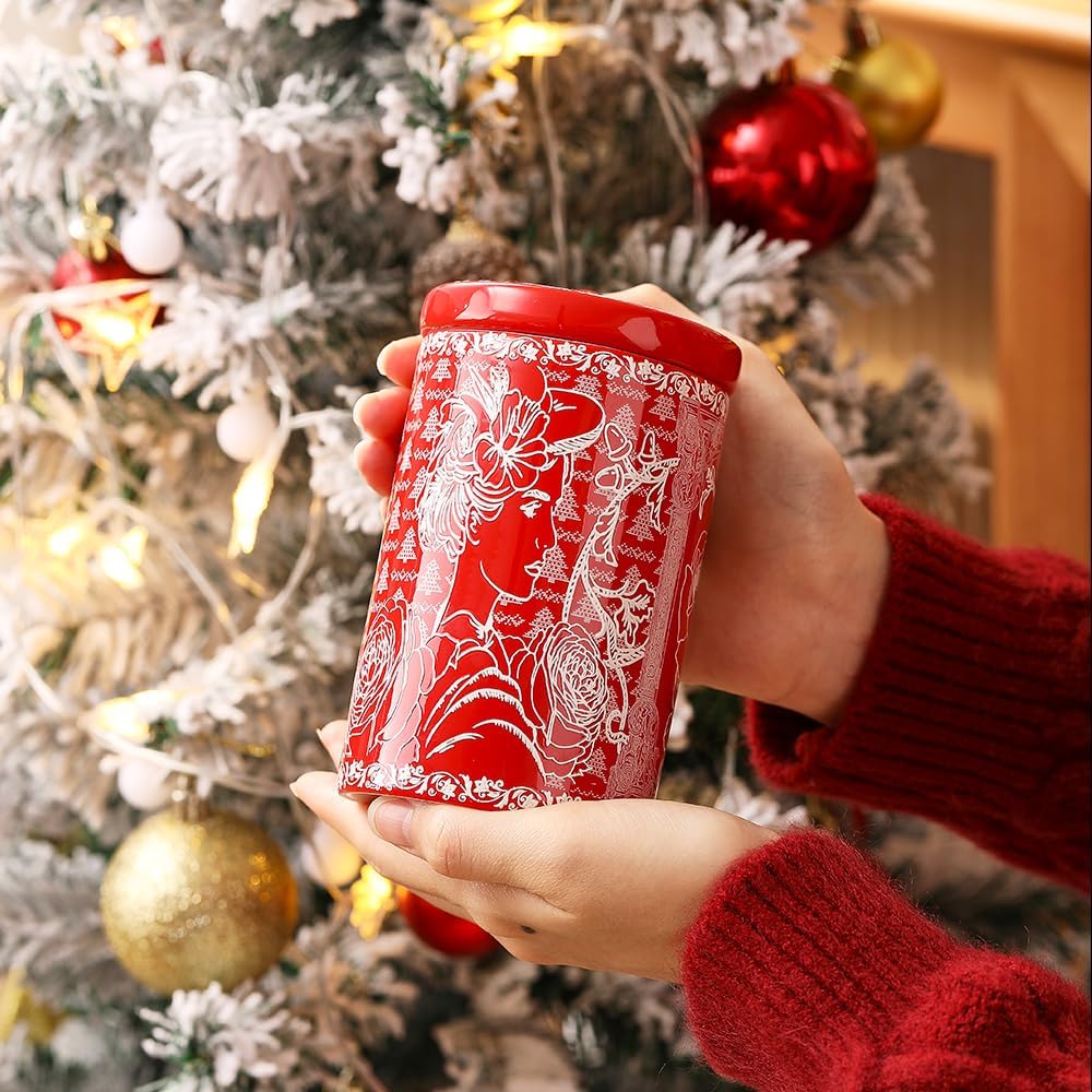 • BRIGHTENING UP ANY PLACE: White Christmas pattern complementing red body of the canister set fits any table, adding a touch to your kitchen.