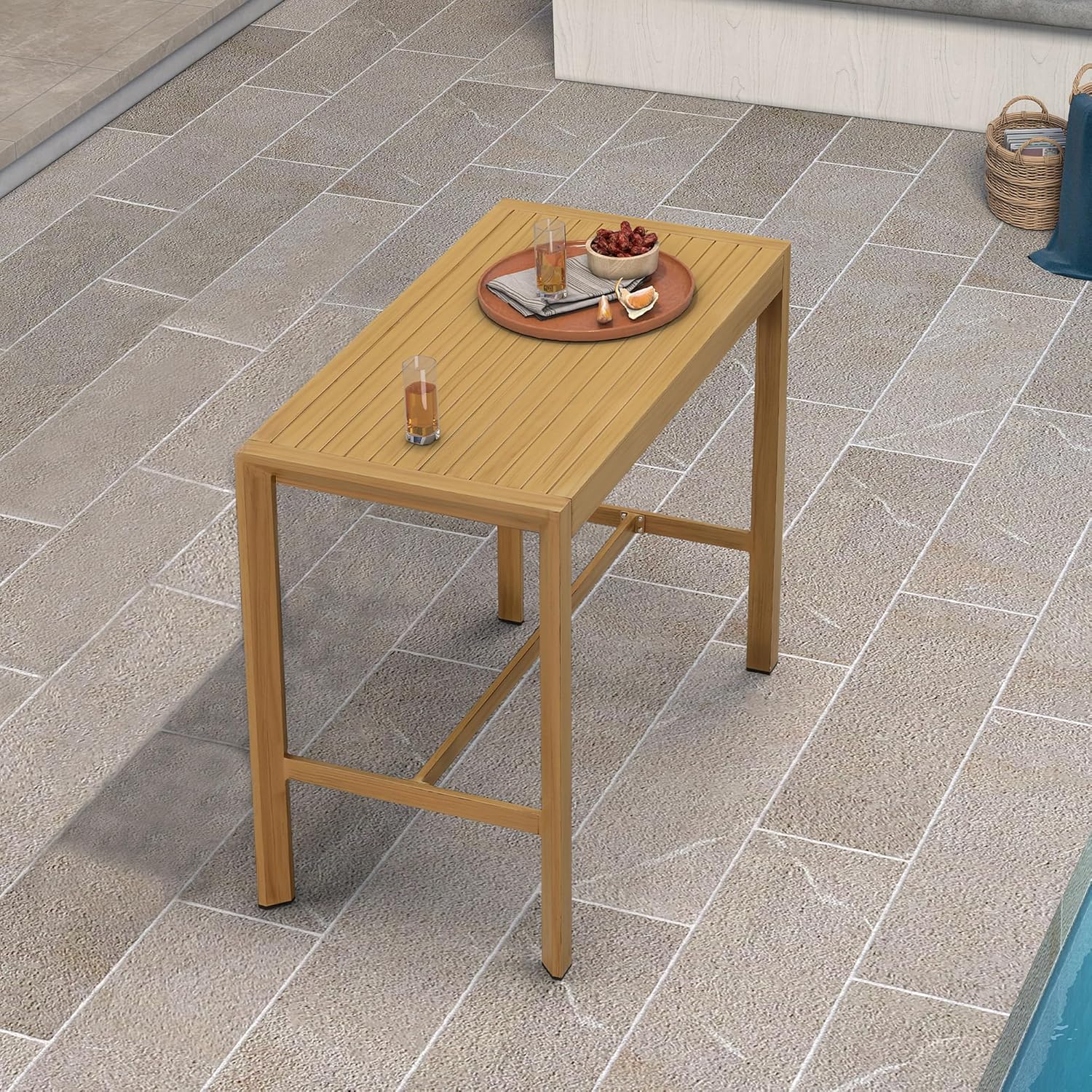 PURPLE LEAF 43.1'' Rectangle Outdoor Patio Bar Height Pub Table, Outside Aluminum Tall Kitchen Bar Table with Sturdy Legs for Bar Stool, Indoor and Outdoor, Garden, Teak