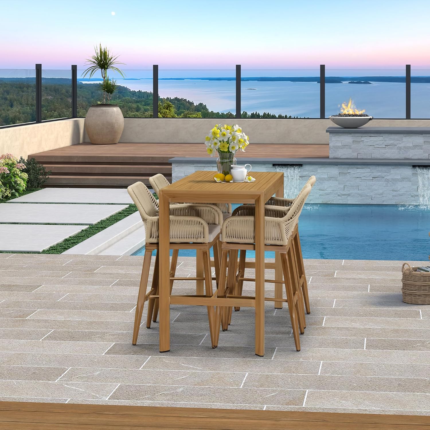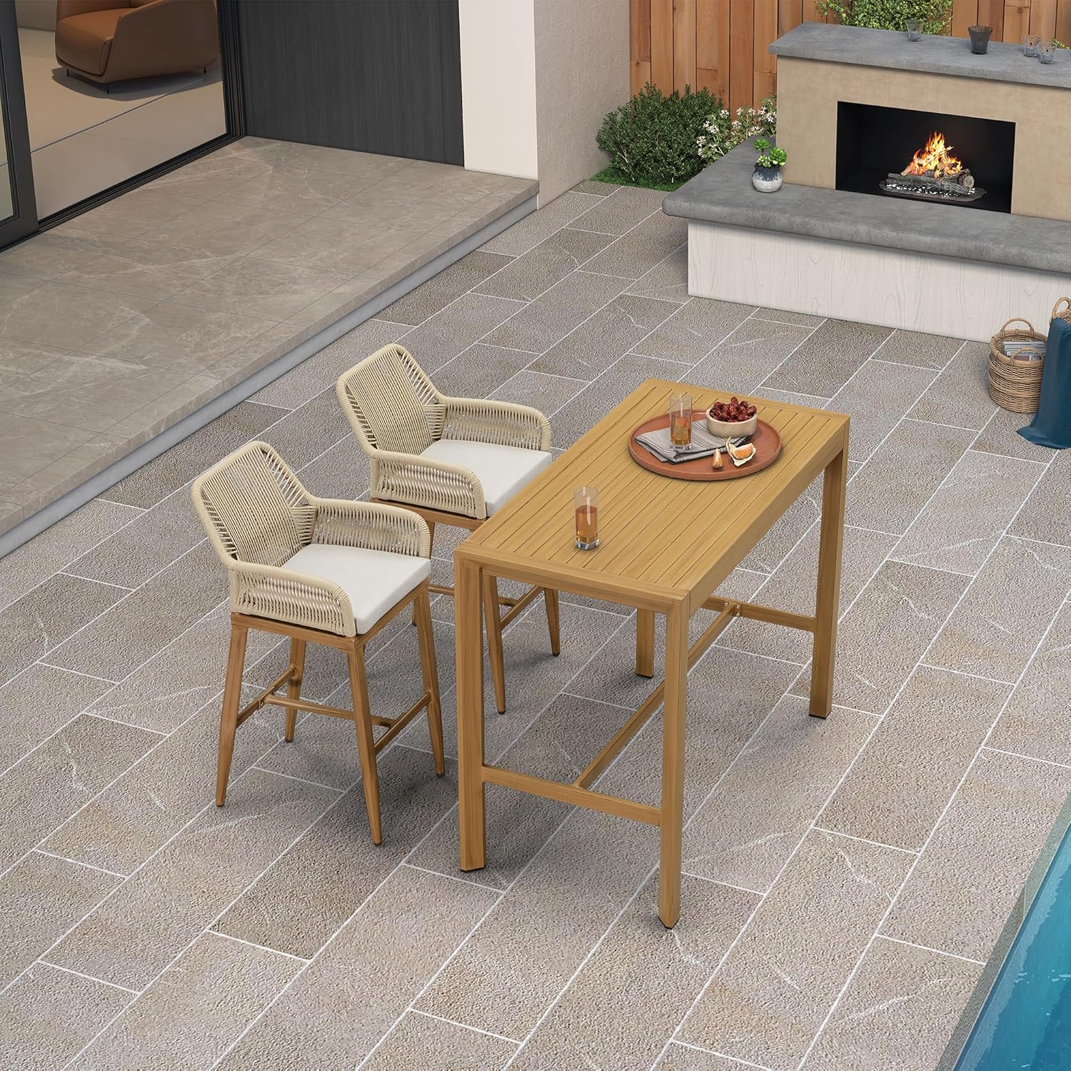 • Dimension: Include 1 tall bar table (51.1 "L x 25.50 "W x 43.1 "H). Available in 3 colors, including teak, grey, and champagne. which can be purchased together with PURPLE LEAF outdoor bar stools of the same color to make a complete set.
