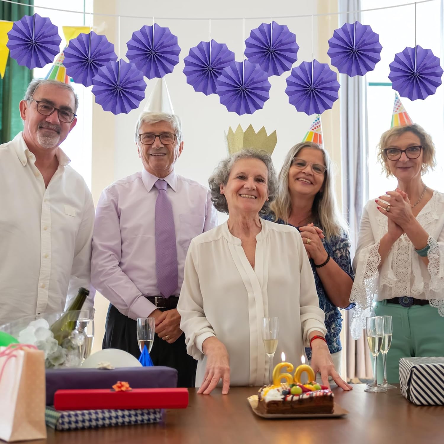 Purple Party Decorations,Purple Bridal Shower Decorations,Halloween Decor Events Accessories,Retirement Decorations Paper Fans Bulk 8in,Anniversary Decorations for Party 30 Color DIY Set(Purple)