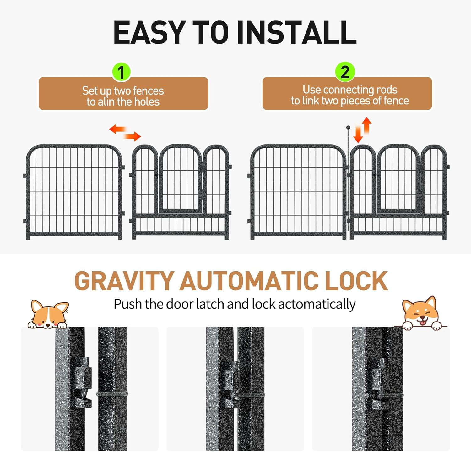 • 【Safety by Design】: The upgraded design of the ground stakes with rounded tops provides protection for your pet's paws, ensuring more robust stability even when the pet is close. The automatic gravity-locking mechanism ensures smooth operation of the door, minimizing the risk of pets unlocking it themselves. All these safety features allow you to truly trust that your pet can move around safely within the enclosure