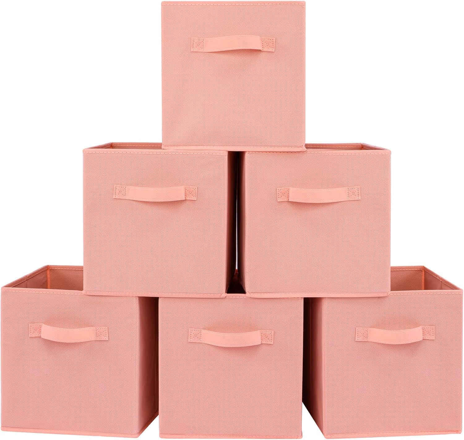 Stero 13x13x13 Inch Fabric Storage Bins 6 Pack Fun Colored Durable Storage Cubes with Handles Foldable Cube Baskets for Home, Kids Room, Closet and Toys Organization Peachpuff