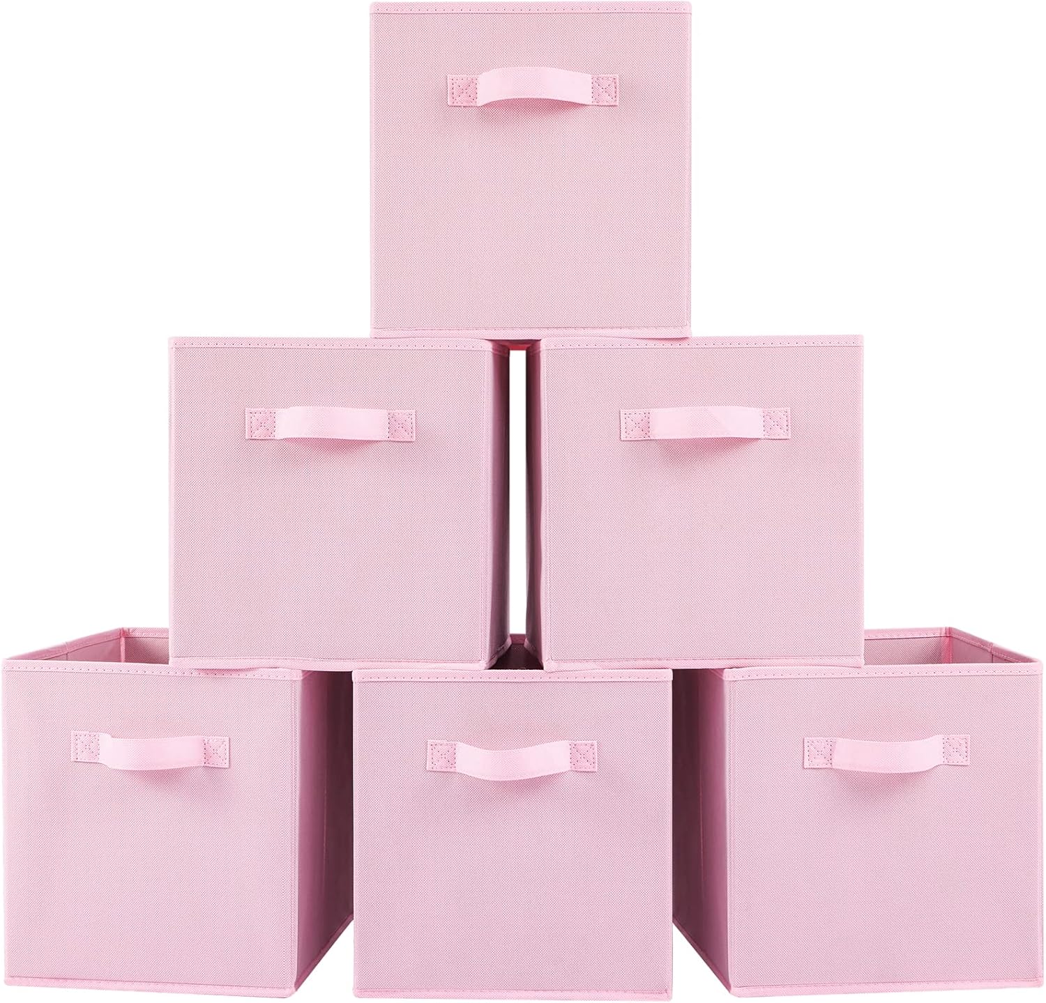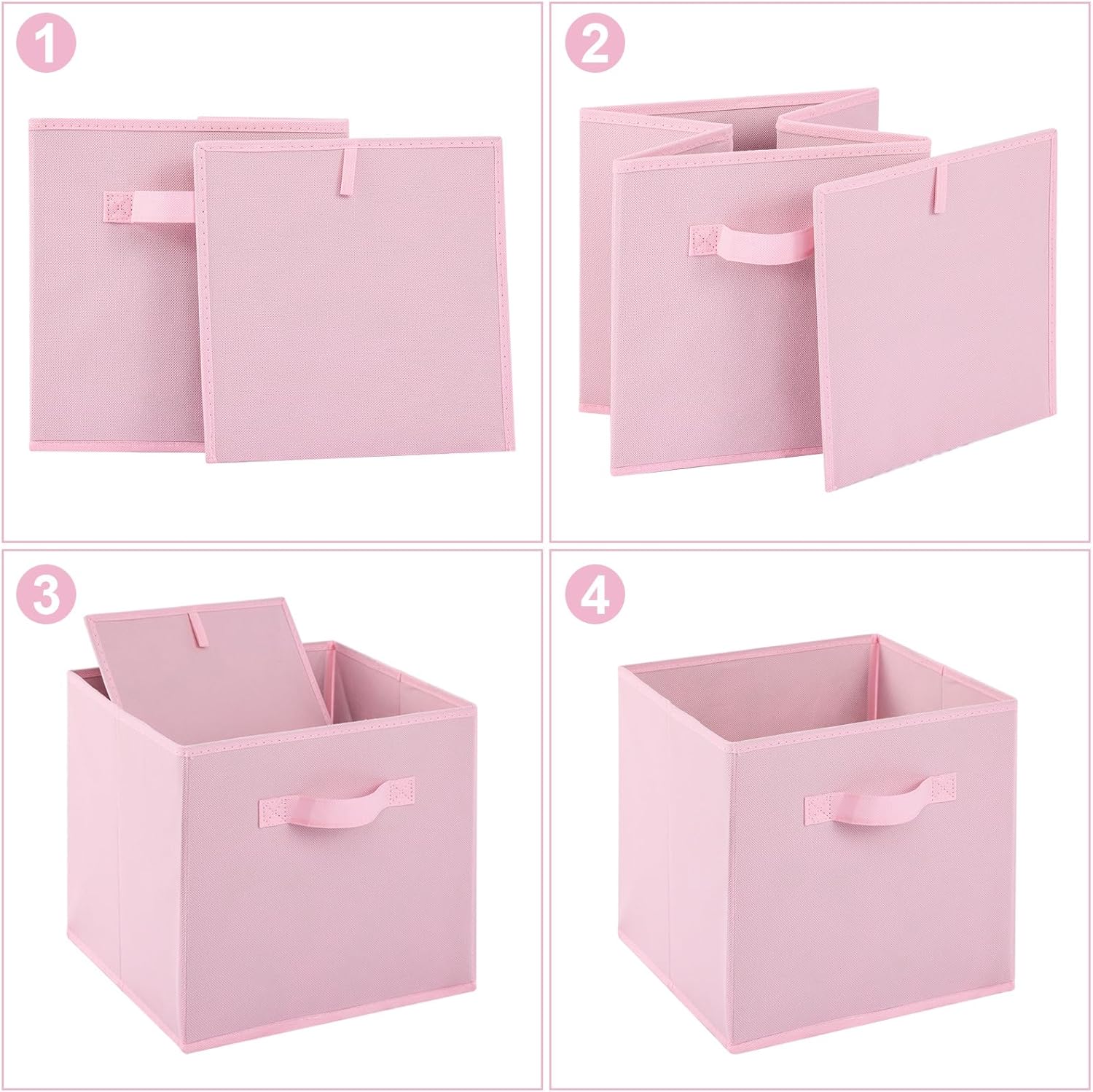 • Perfect Storage Solution: 6-piece set, pink Collapsible cube storage bin, Provides an attractive, lightweight solution to many storage needs, making your room decor very pretty while keeping your household items neat and organized.