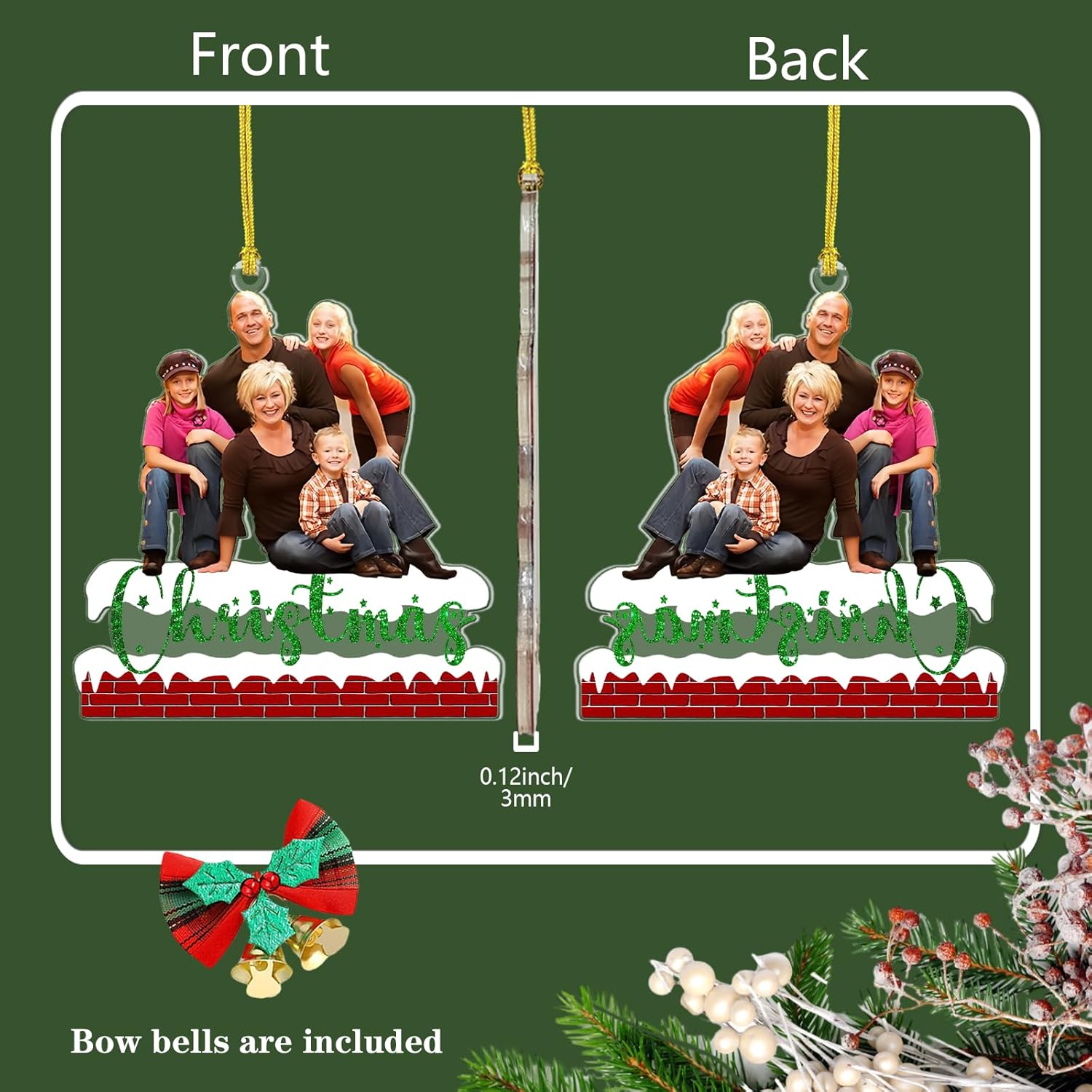 • Celebrate Every Occasion: Our customized family Christmas ornaments are adaptable to all your special moments. Simply upload photos with various themes to reflect your unique style. Whether it's a heartwarming family portrait, a snapshot of your baby's first Christmas, or a cherished engagement or wedding picture, these ornaments will illuminate your memories.