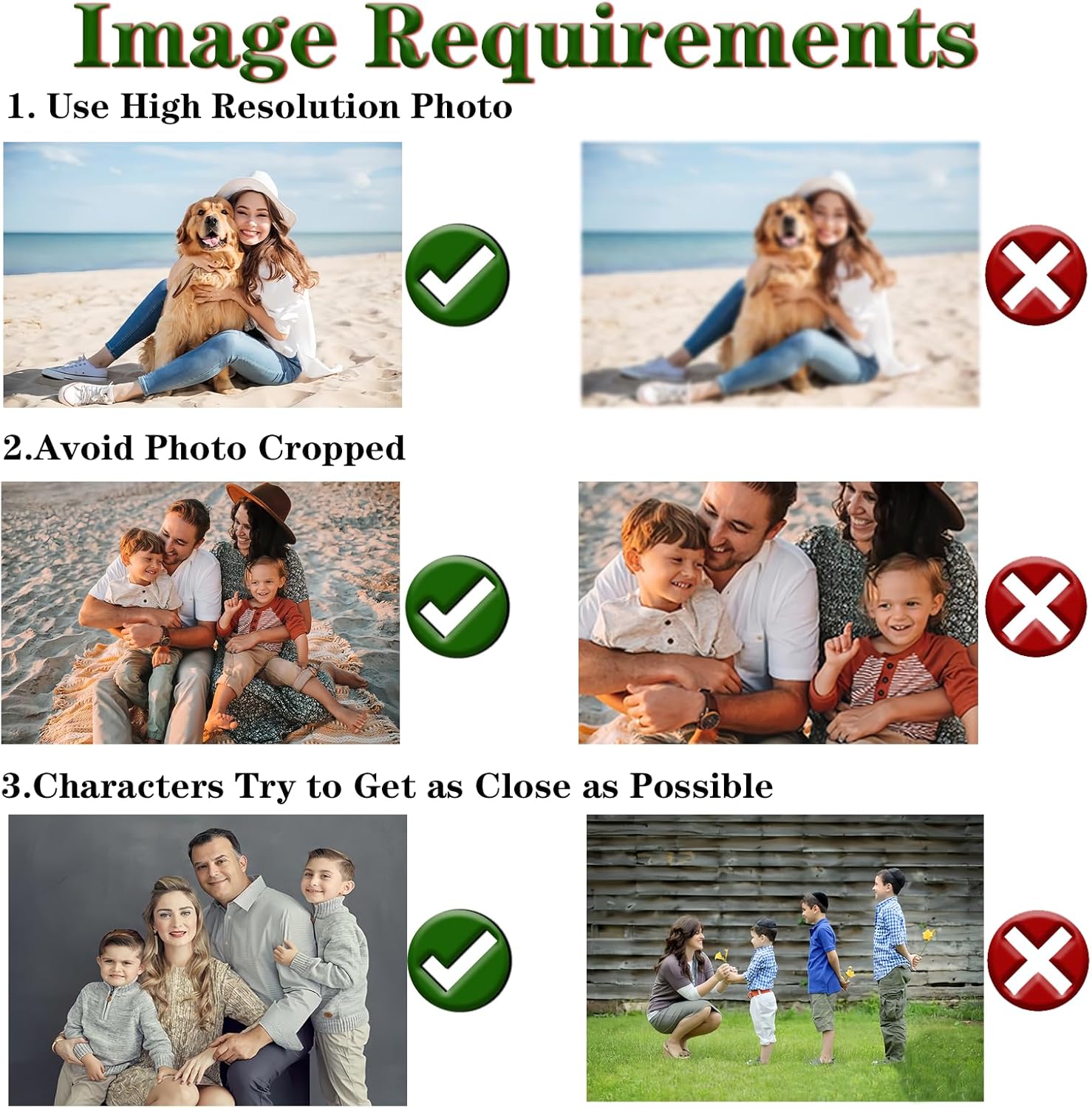 • Important Tip: To ensure the best results, we recommend selecting pictures that are not cropped or affected by significant sunshine flares, as these factors may impact the clarity and vibrancy of your ornament. By choosing the right photo, you'll create a stunning keepsake that beautifully encapsulates the essence of your special moments during the festive season.