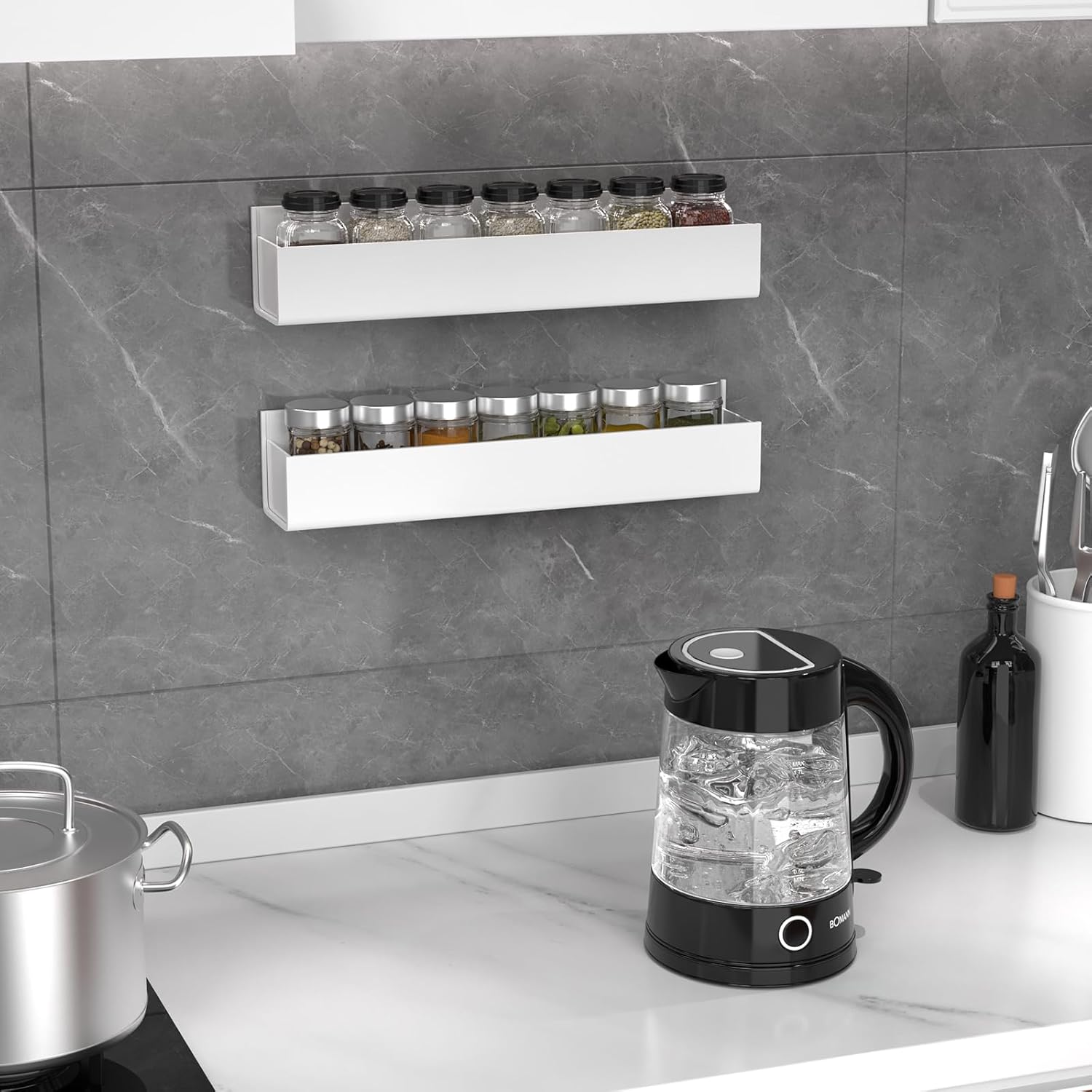 • Flexibility: Each wall mounted spice rack organization shelf has a removable end cap at the end of the shelf, while ensuring the safety and stability of the items you place