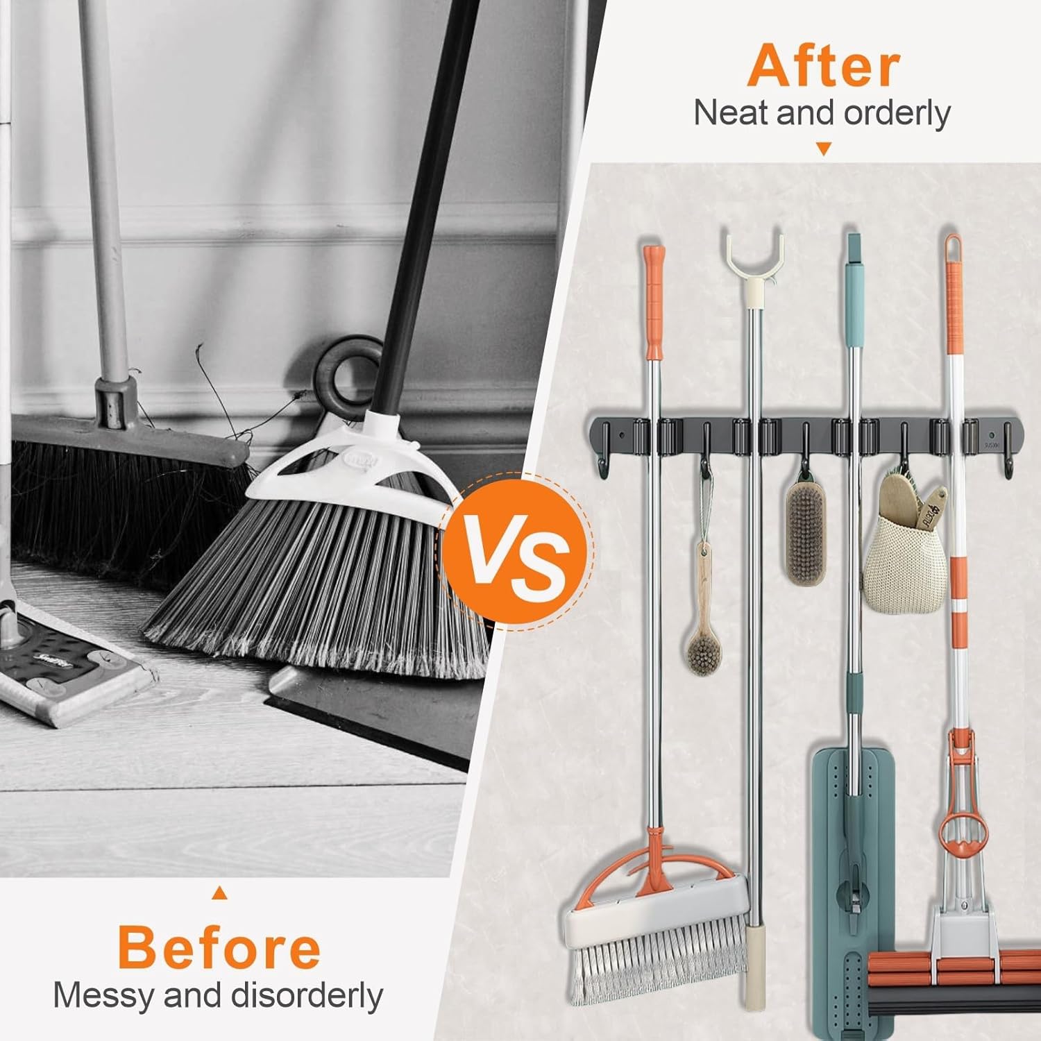 • 2024 UPGRADE: The upgraded broom organizer features longer and stronger screws and expansion tubes to ensure the mop holder is securely mounted on the wall