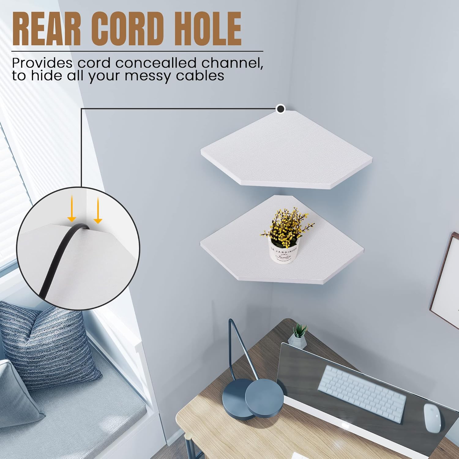 • 【Easy to Mount】The package comes with user-friendly instructions and all the necessary mounting hardware. Just place the corner wall shelf level in your desired location and secure it in place using the hidden bracket connectors provided, followed by screws.