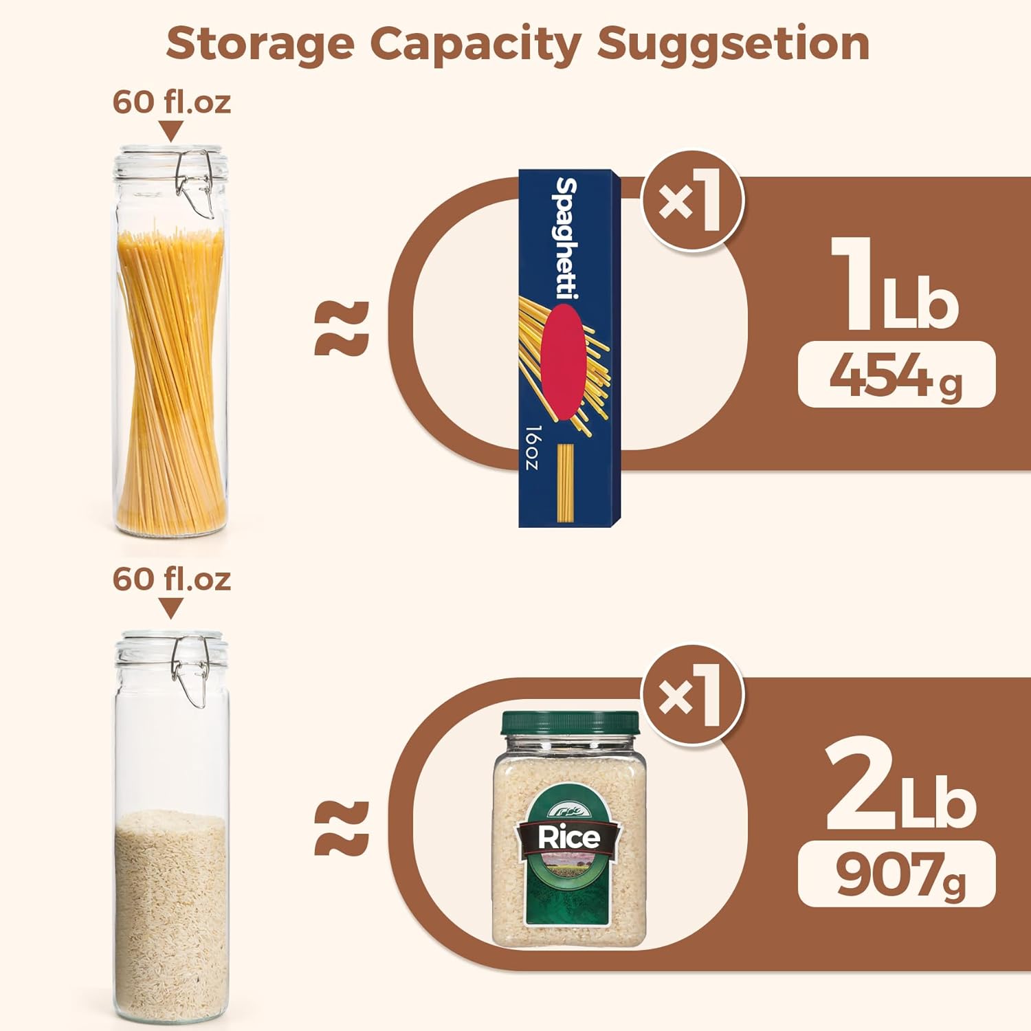 • Versatile Glass Container: The pasta storage jars can be a pickling jars for home and kitchen; It is good to preserve various food like jams, chutneys, spaghetti, cereal, sugar, spices, nuts, tea, dried beans and your favourite snacks like biscuits