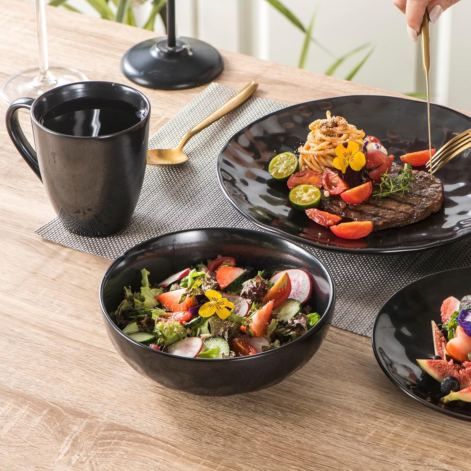 vicrays Coffee Mug Set, 12 Ounce, Ceramic Mug for Men, Women, Unique Glazed Mugs with Handle for Coffee, Tea, Milk, Cocoa, Cereal - Set of 6 Black