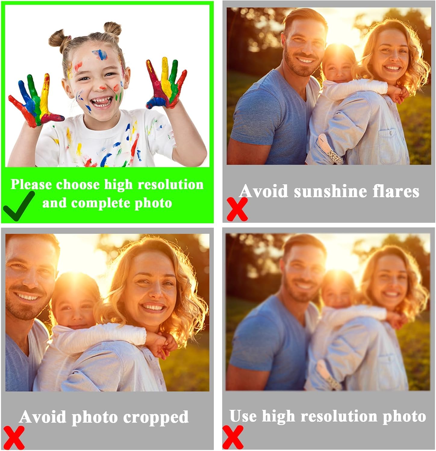 • ๐ŸŽ„๐ŸŽ„UV PRINTING:Personalized ornaments use HD printing and die-cutting technology,2d flat shape,double-sided printing.5 sizes,3.5",4.7",5.9",7" and 7.8", you can upload any picture that is memorial,we will print the picture and cut out the shape,give personalized ornaments to him or her as Christmas gift ideas