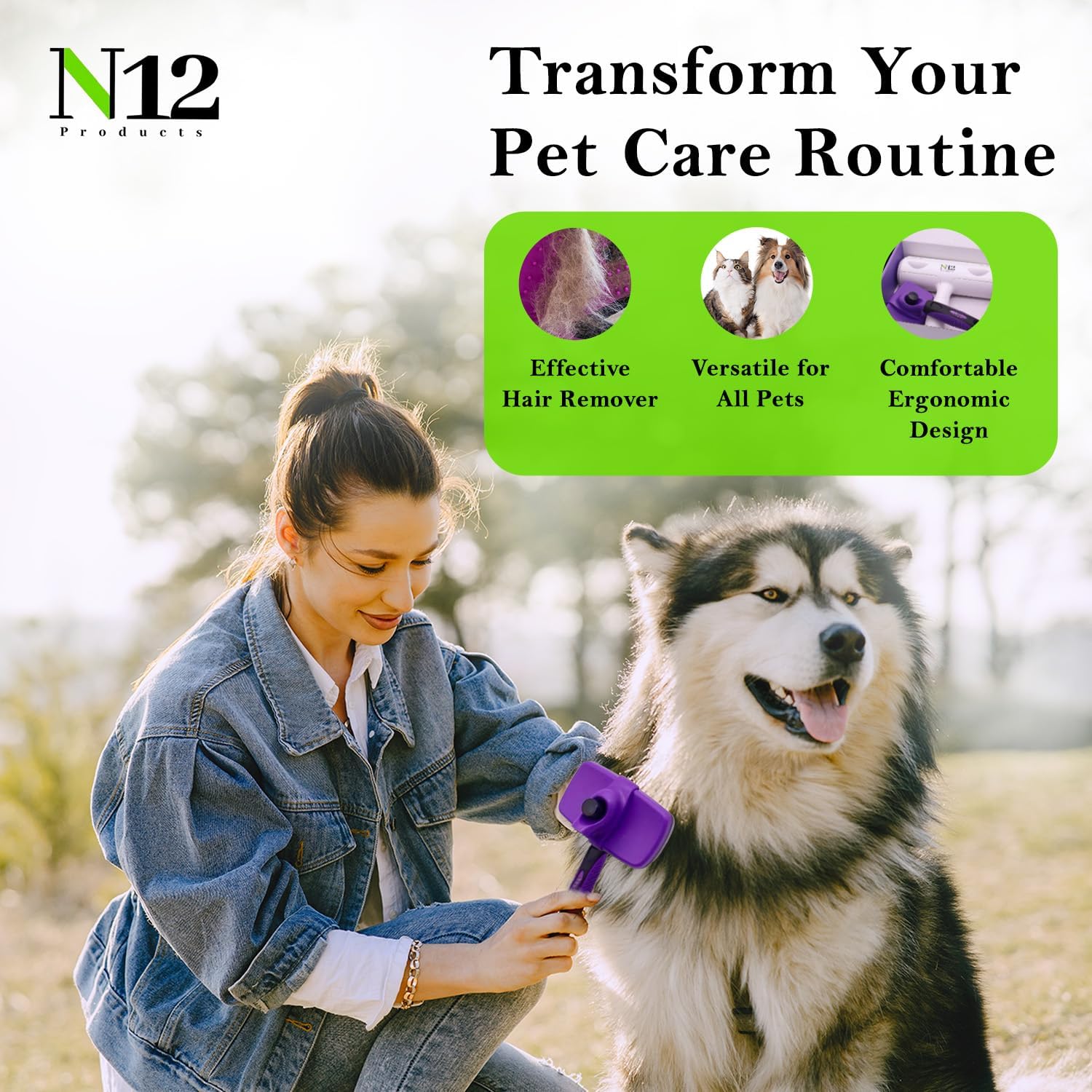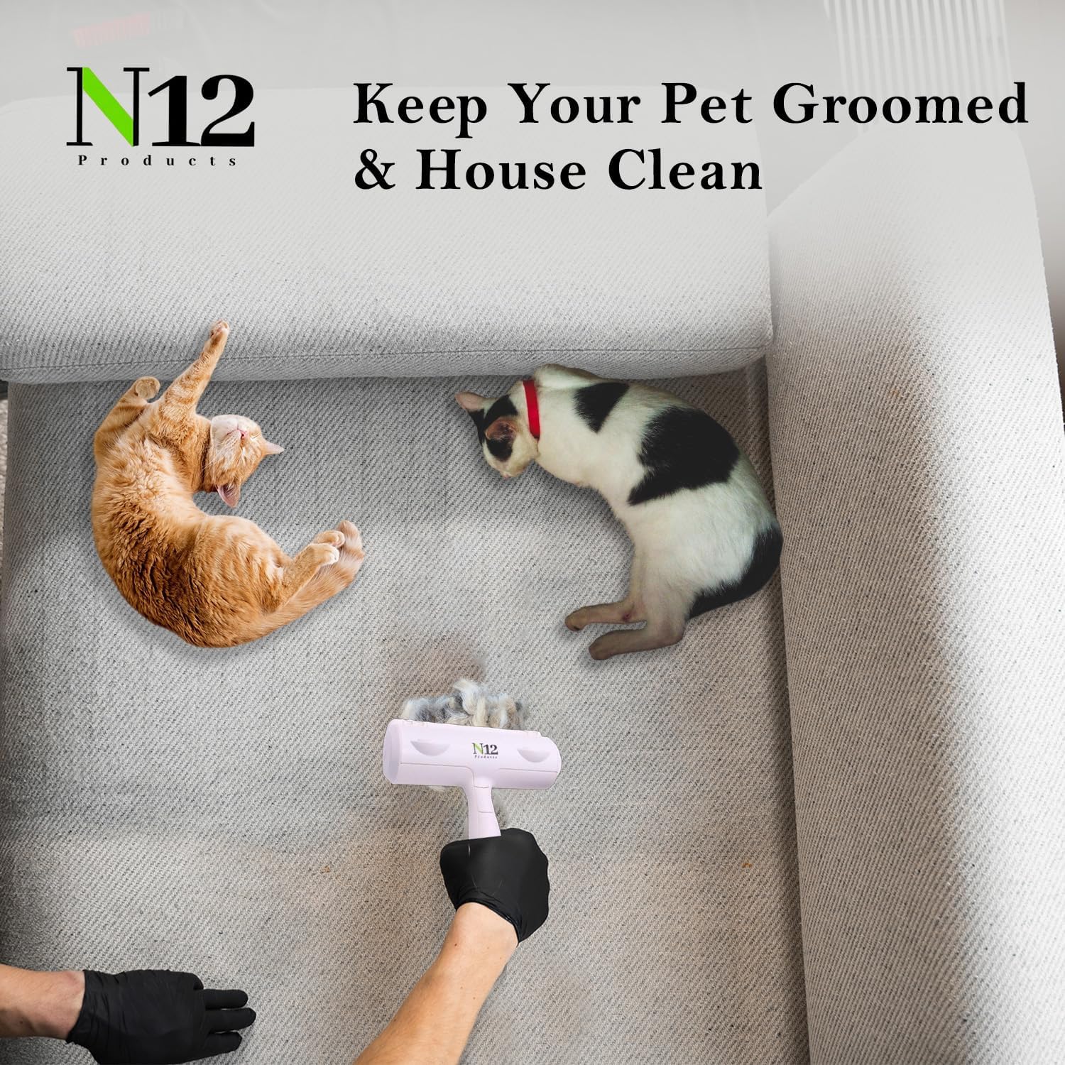 N12 Cat, Dog Hair Remover/Lint Roller and Grooming Hair Bush Combo – Pet Fur Remover for Couch, Furniture, Carpet, Car Seat & Self-Cleaning Slicker Grooming Brush with Long Pins for Shedding