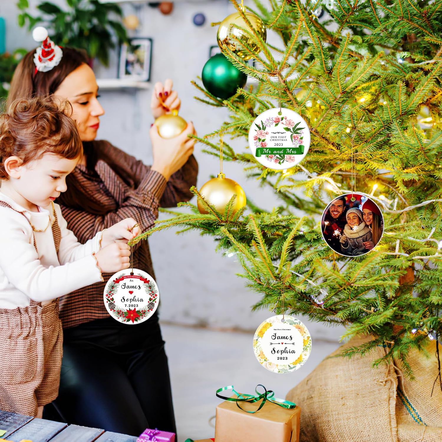 • 【Personalized Christmas Ornaments】This personalized Christmas ornament is completely customized to your needs! It can celebrate the first Christmas for babies, and cheer the Christmas for married, engaged, pets, first Christmas in new home. You can customize several ornaments to commemorate important moments. Imagine how surprised they will be when they receive the personalized Christmas Gifts