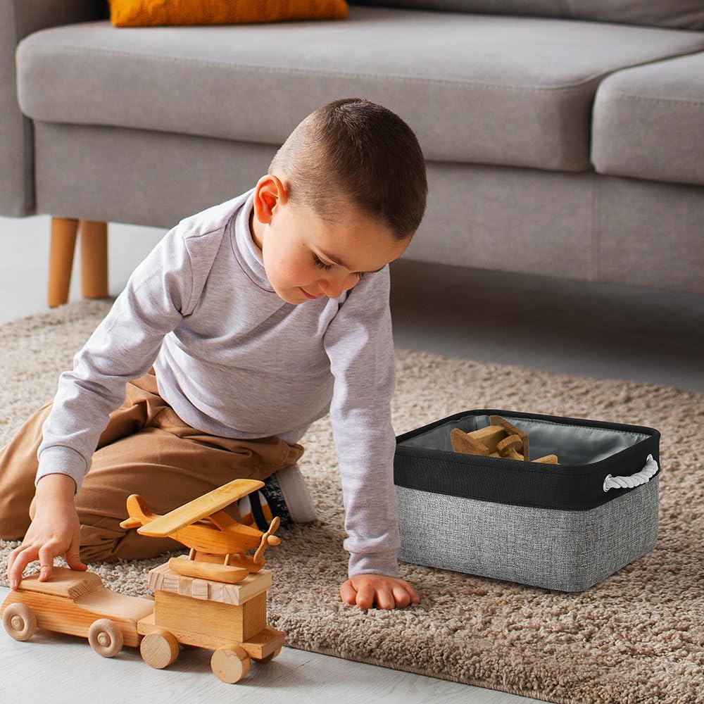 TheWarmHome Storage Basket for Organizing - 1 Pack 14x10x6.7 inch Collapsible Storage Bins for Shelves, Dog Toy Bin for Closet Organizer laundry Gift Cloth Nursery (Grey & Black)