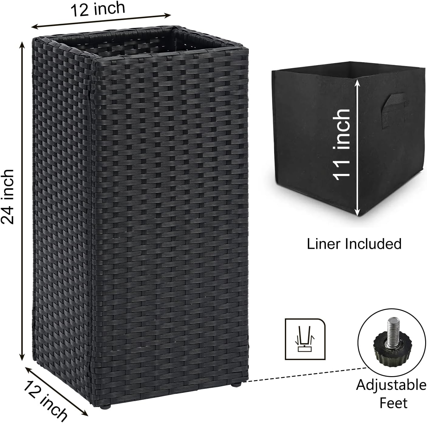 SUNNYPARK 2 Pack Tall Planters for Outdoor Plants Rattan Modern Tall Square Planter Box with Removable Liners Indoor Outdoor Porch Patio Flower Pot (12’’ x 12’’ x 24’’)