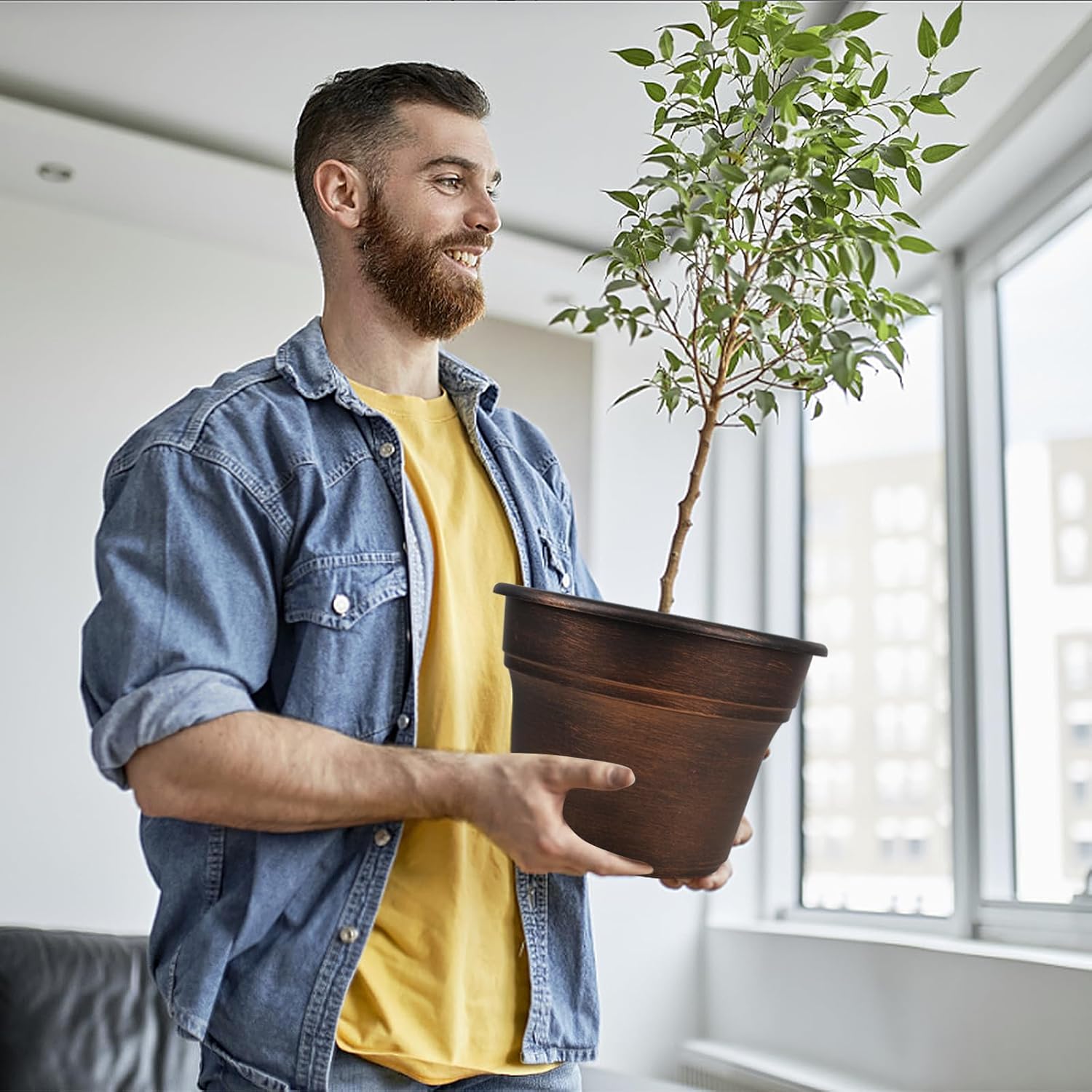 • 【TRADITIONAL DESIGN】Plastic planters for indoor plants with trays are designed in in dark gold colors & a classic look, which allow this pot to fit into any indoor & outdoor setting. With these golded flower pots, it could adds fresh, decorative flair to your home. Decorate your windowsill, desktop, shelf, bedroom, living room, kitchen, garden, office with our 16 inch large plastic plant pot.