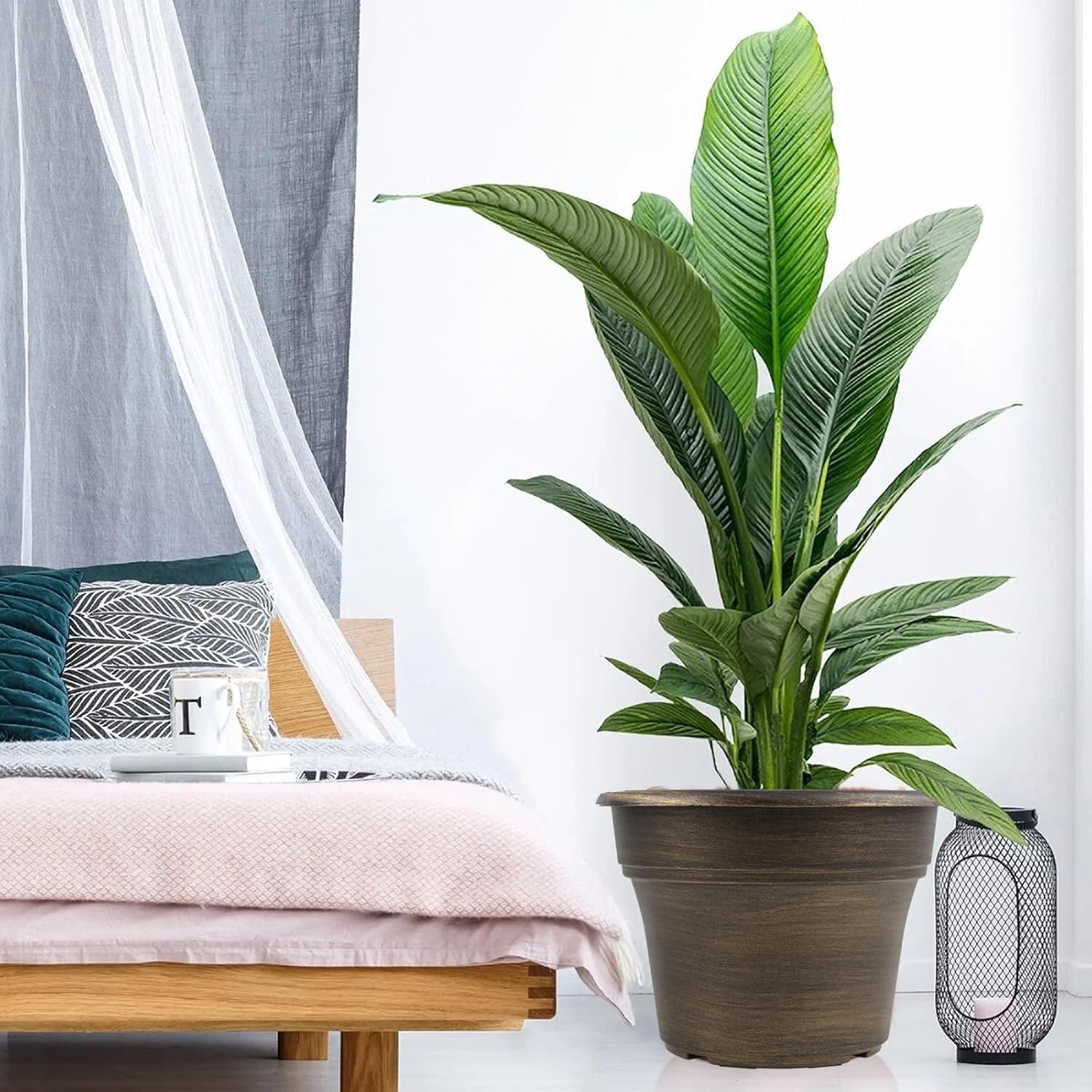 • 【TRADITIONAL DESIGN】Plastic planters for indoor plants with trays are designed in in dark gold colors & a classic look, which allow this pot to fit into any indoor & outdoor setting. With these golded flower pots, it could adds fresh, decorative flair to your home. Decorate your windowsill, desktop, shelf, bedroom, living room, kitchen, garden, office with our 16 inch large plastic plant pot.