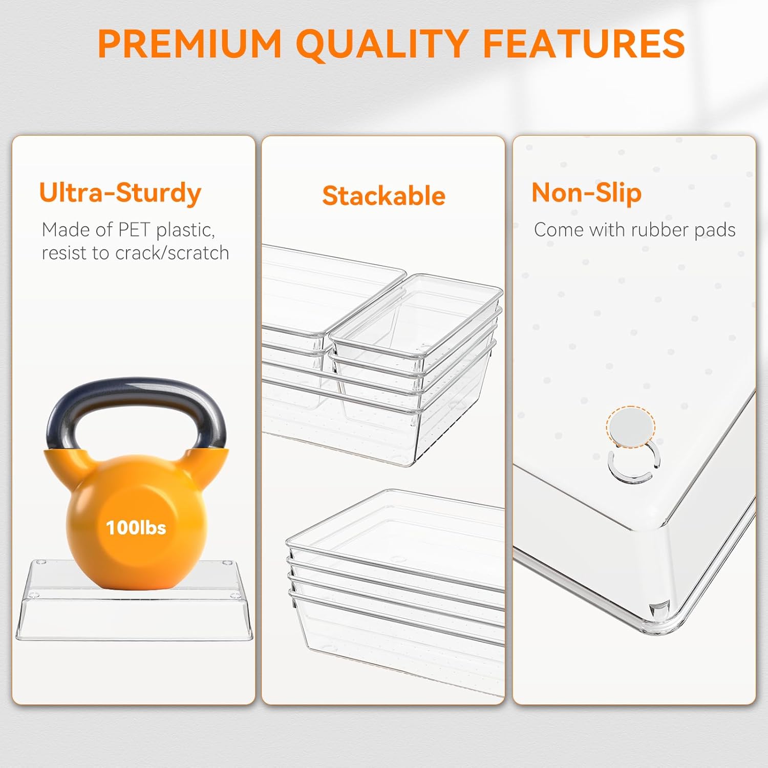 • Material : BPA-Free Clear Plastic Drawer Organizer Set