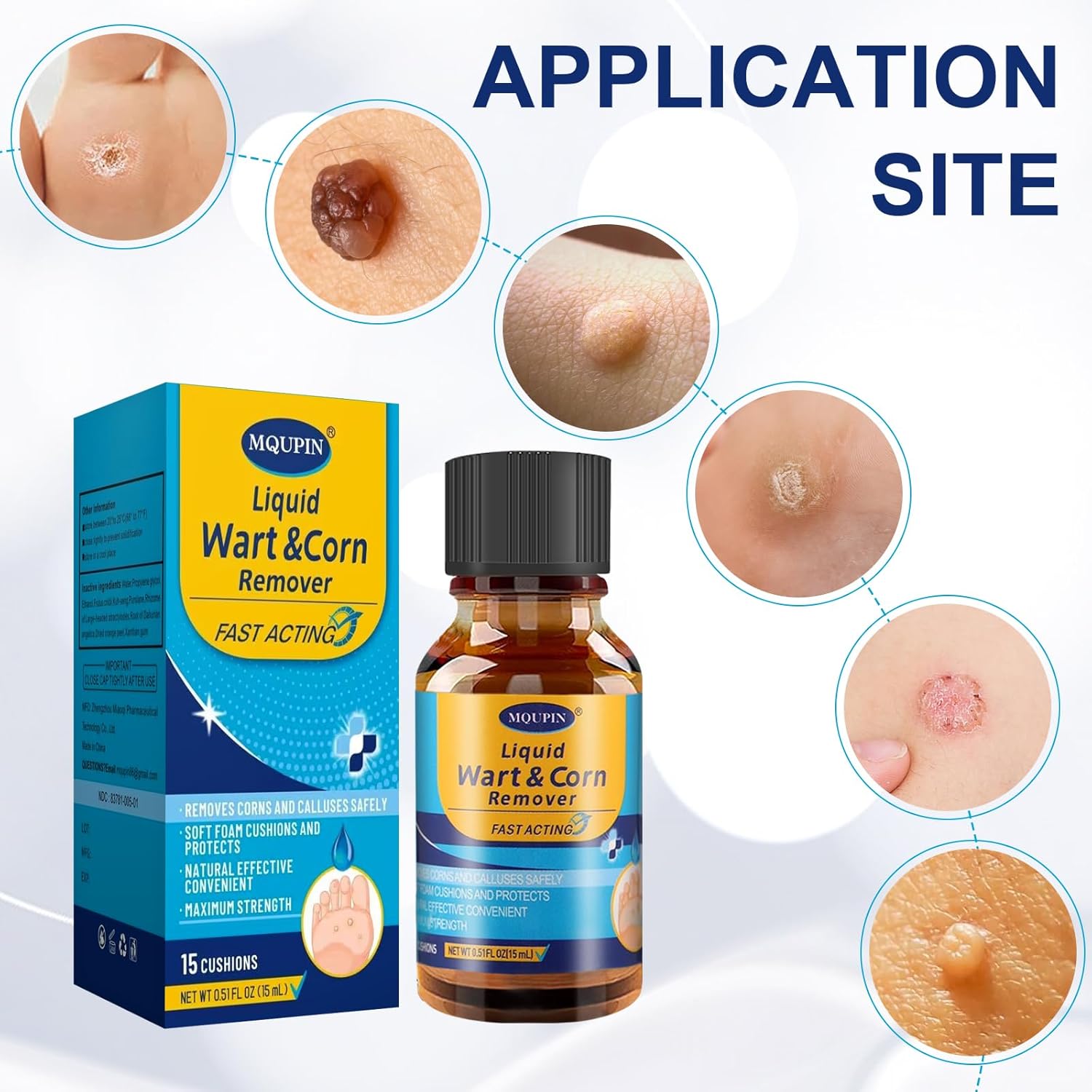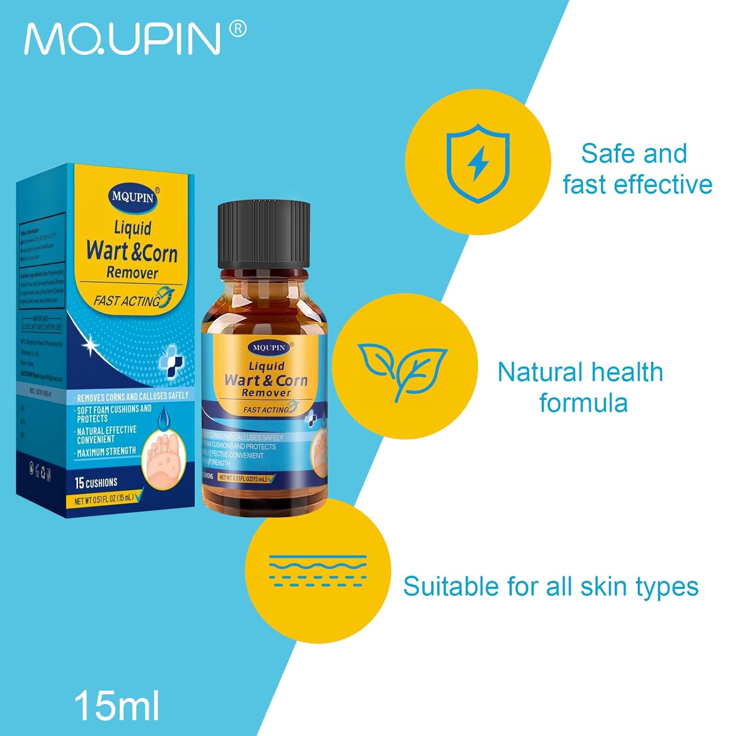 MQUPIN Liquid Corn Removers for Feet, Corn Remover for Toes-Fast Acting Liquid for Corn, Common and Plantar Removal-Safe Foot Care with Corn Cushions