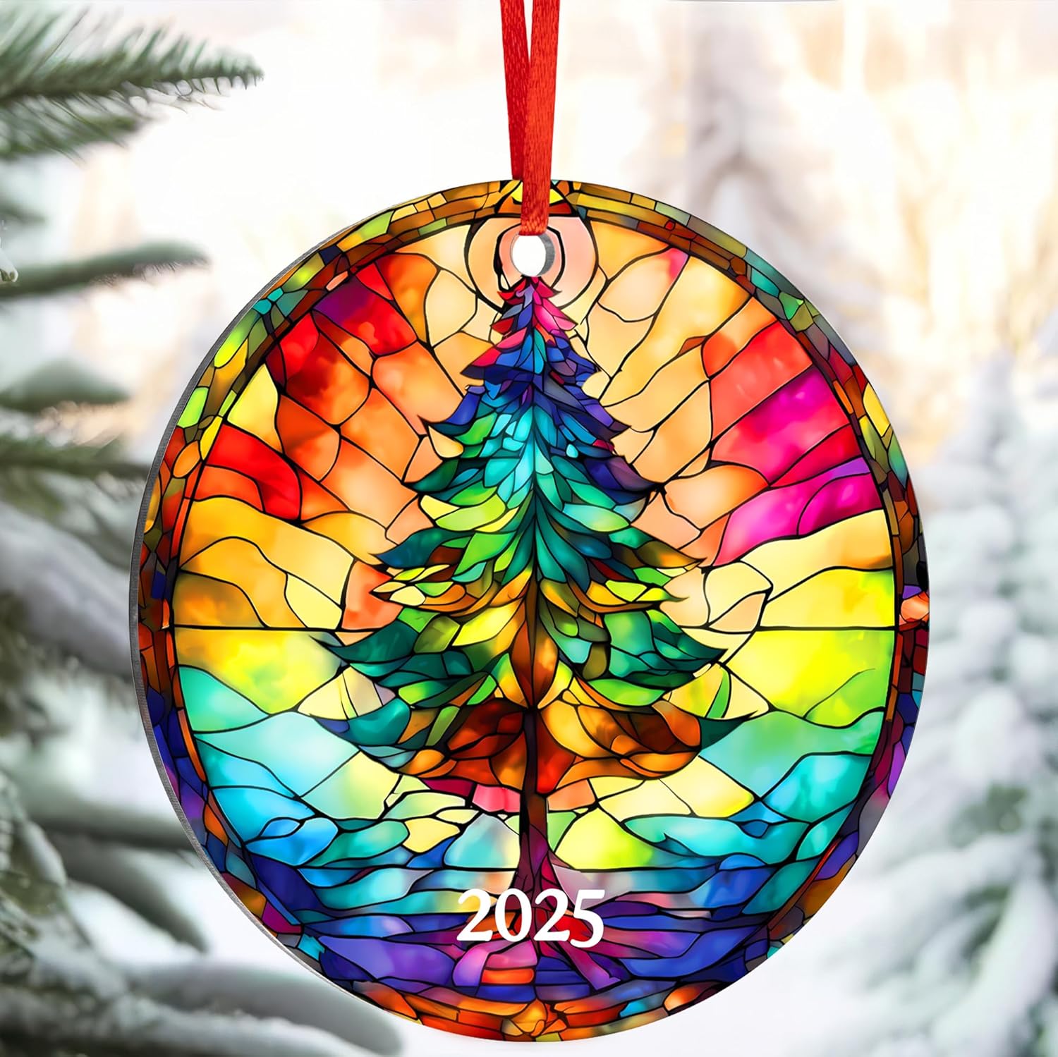 • ๐ŸŽ„ COLLECTIBLE CHRISTMAS ORNAMENTS WITH YEAR 2025: Celebrate this holiday season with our beautifully crafted christmas ornaments with year 2025. Designed with a stunning stained glass effect, this ornament is perfect for collectors seeking one of a kind christmas ornaments.
