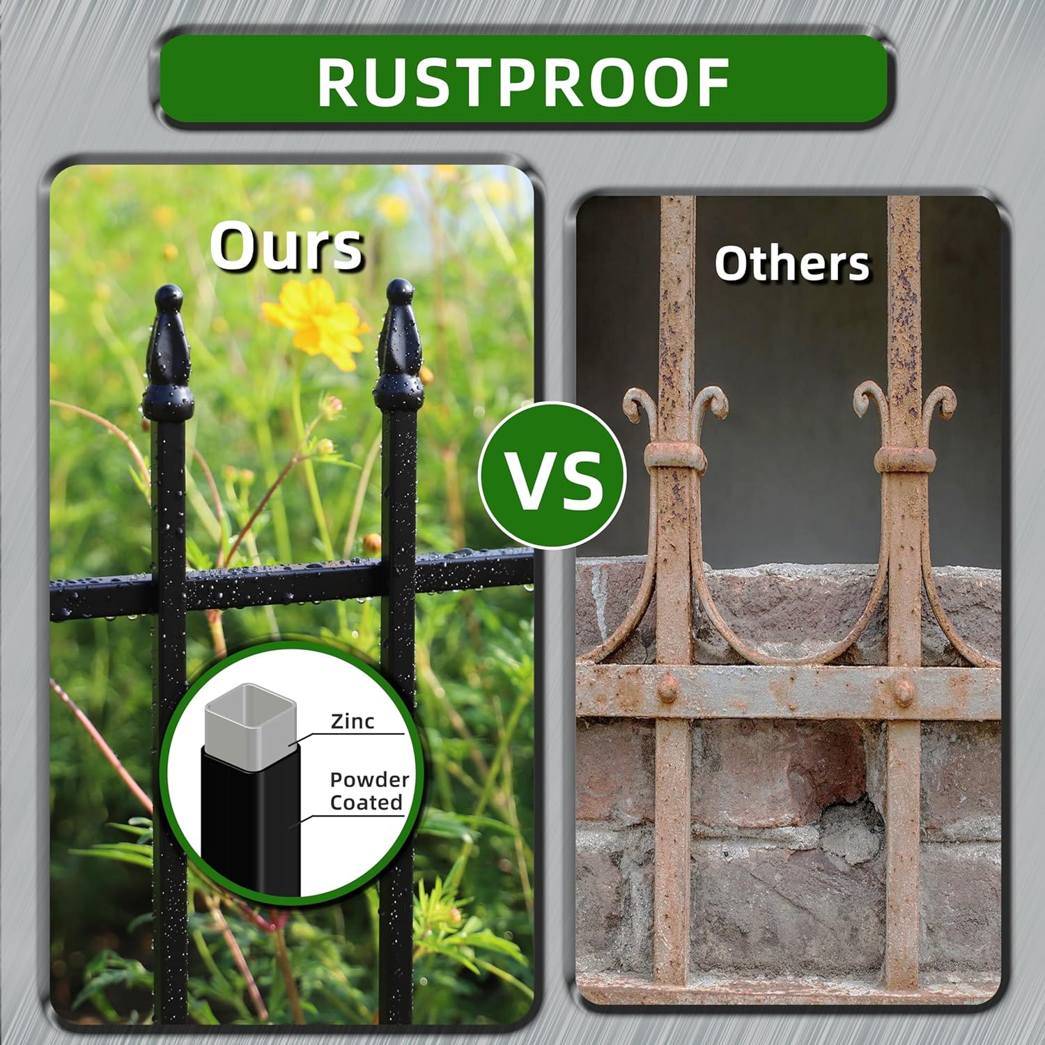 • RUSTPROOF AND DECORATIVE: This garden fencing 24 inch high with black powder coated finish is rustproof and durable for outdoor using, classically designed Roman Column decoration on top part, which makes fences attractive.