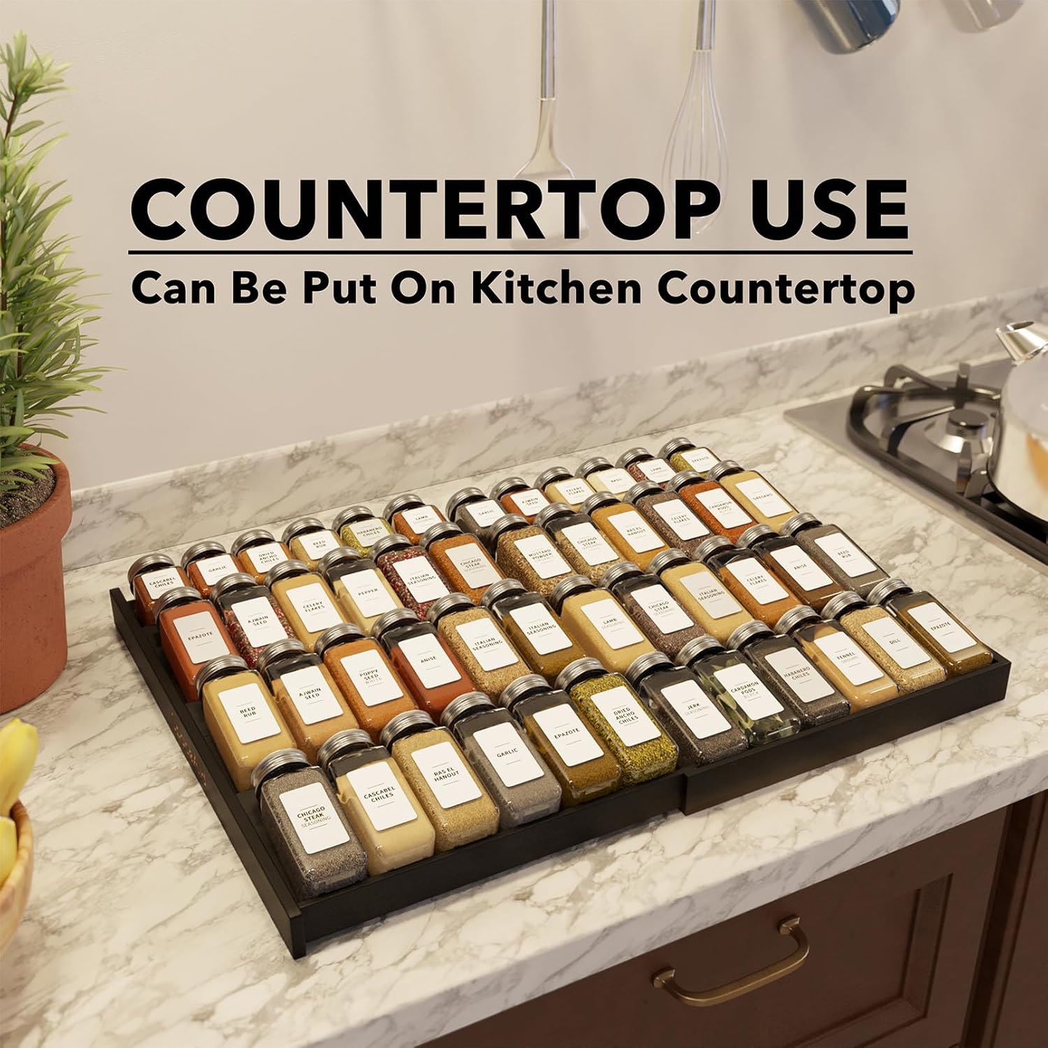 • STURDY CONSTRUCTION - The drawer spice rack is made of durable solid bamboo; Live an organized and sustainable life with this bamboo seasoning drawer organizer