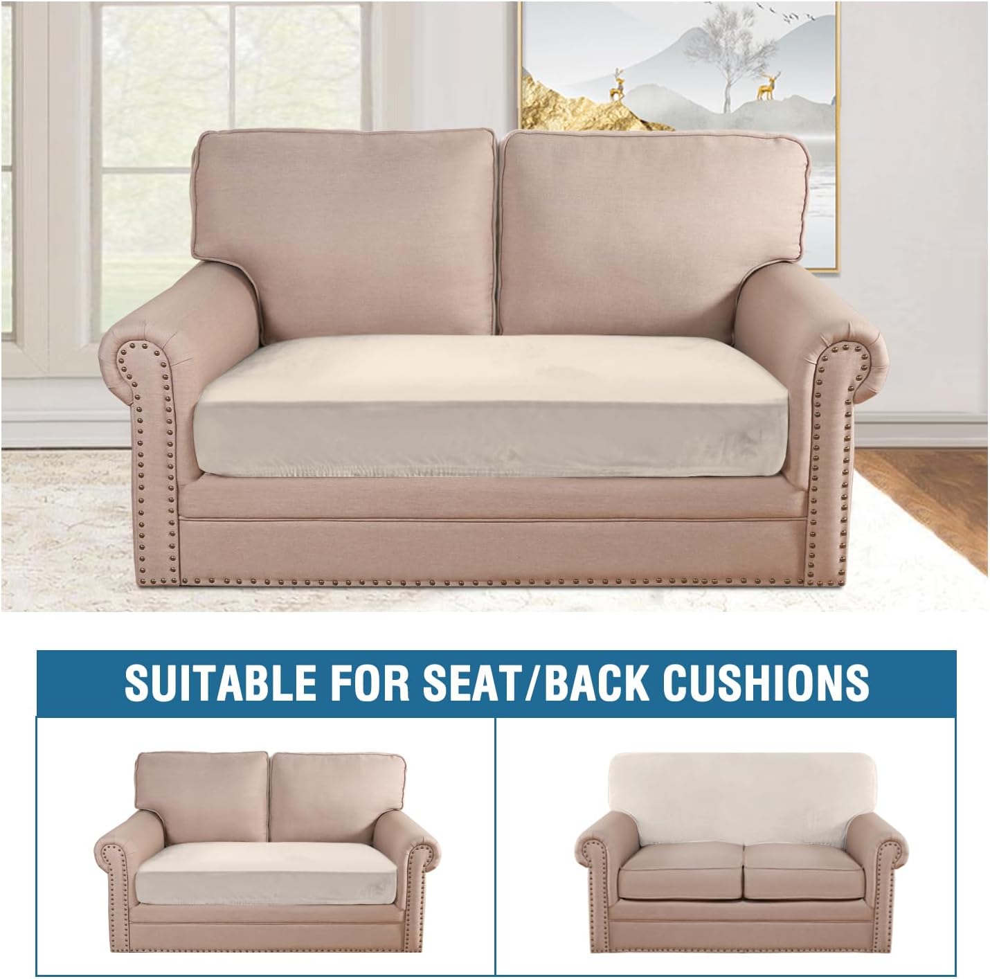 H.VERSAILTEX Velvet Stretch Individual Couch Cushion Cover Plush Slipcover for Loveseat Sofa Furniture Protector Seat Cover (1 Piece Loveseat Cushion Cover, Ivory)