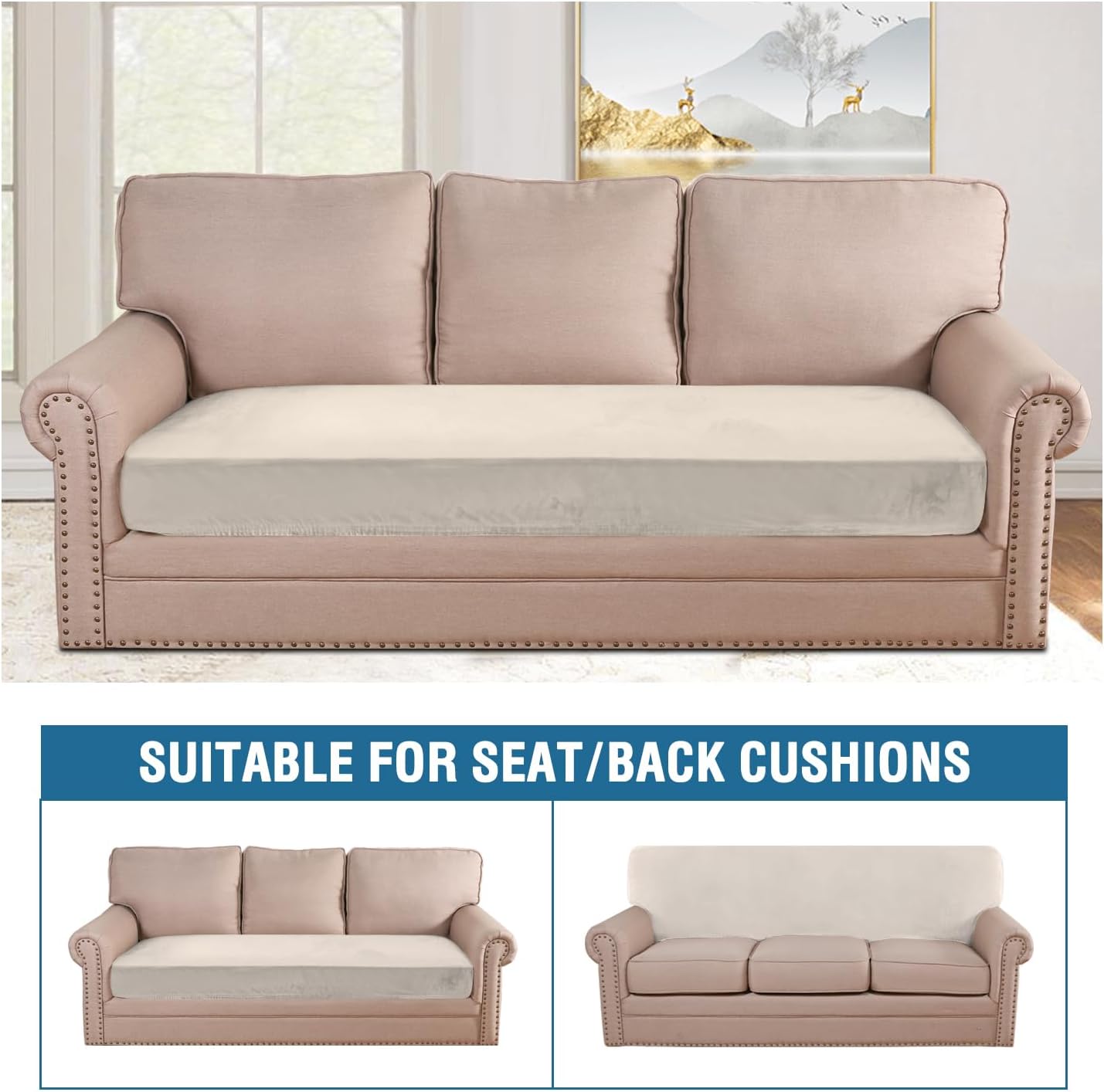 H.VERSAILTEX Velvet Stretch Individual Couch Cushion Cover Plush Cushion Slipcover for Loveseat Sofa Cushion Furniture Protector Seat Cushion Sofa Cover (1 Piece Sofa Cushion Cover, Ivory)