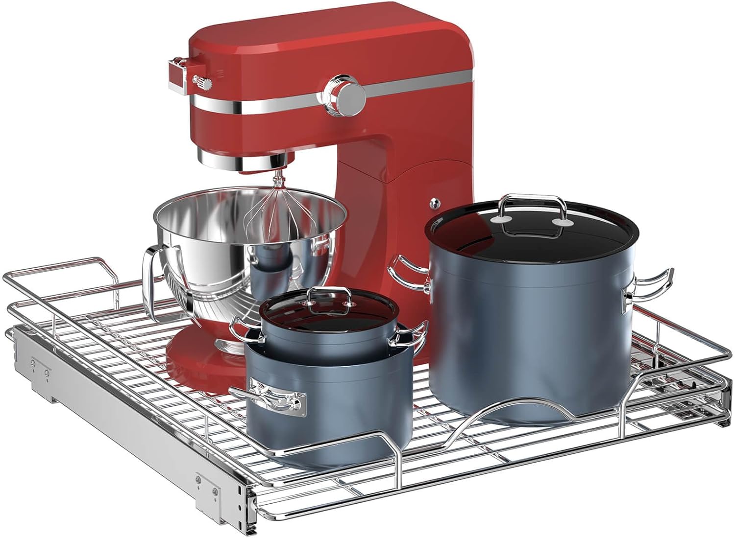 OCG Pull Out Cabinet Organizer (21" W x 21" D), Pull out Shelves 1 Tier, Cabinet Slide Out Shelves for Base Cabinet Organization in Kitchen Bathroom Pantry, Bottom Mount, Chrome Finish