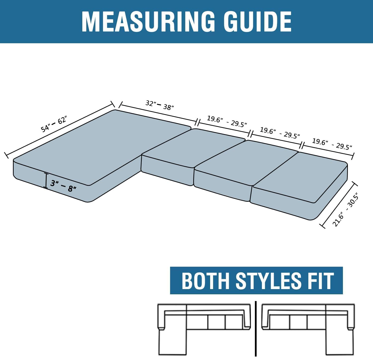 • UPGRADED THICKER: Each individual cushion cover fits up to 19.6-29 inch width, 21.6-30.5 inch depth, 3-8 inch thickness while the chaise cover fits up to 32-38 inch width, 54-62 inch depth, 3-8 inch thickness. Feature one-size-fits-most, kindly measure before ordering