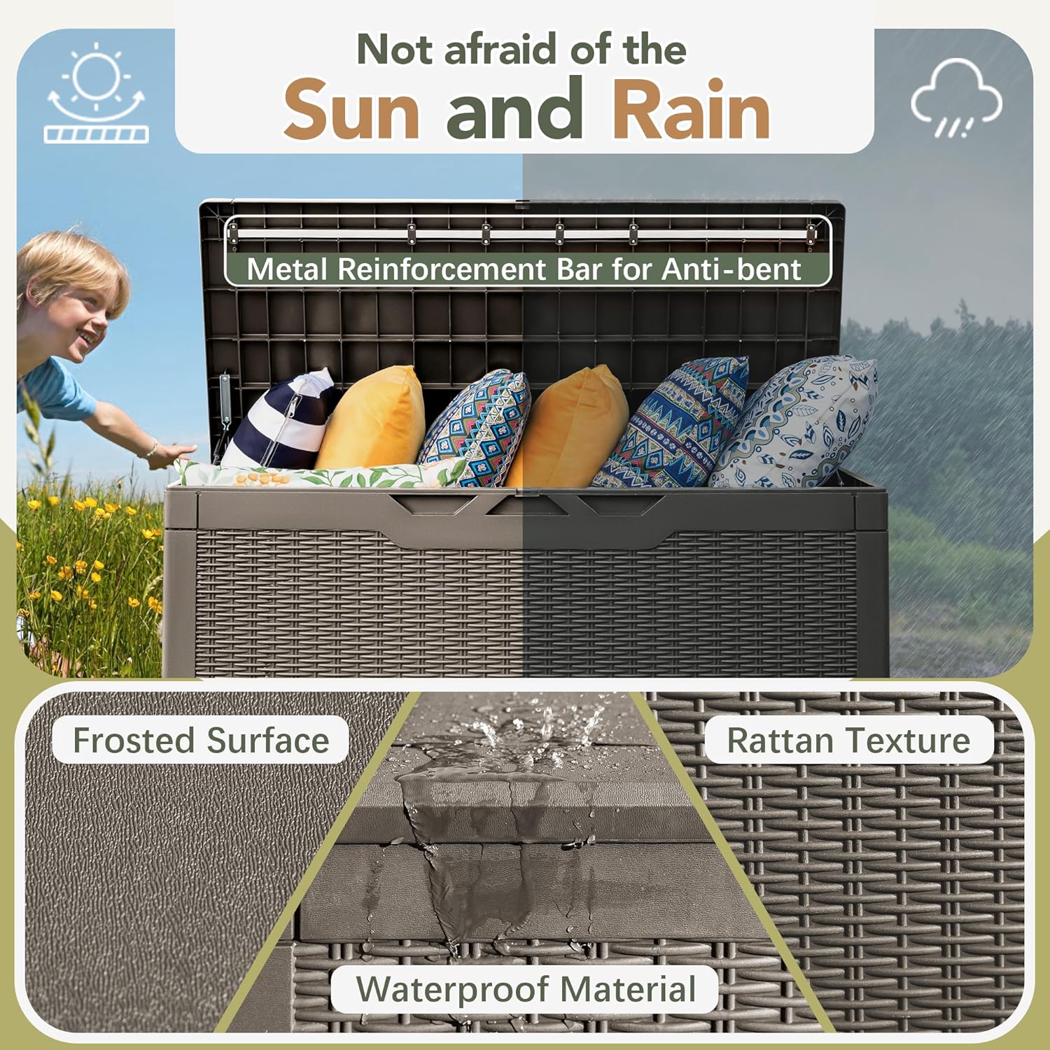 • [All-Weather Material] Deck box is made of premium Resin, featured with waterproof and UV resistant which protects its exterior from fading and keeps its interior dry. Suitable for long time outdoor using