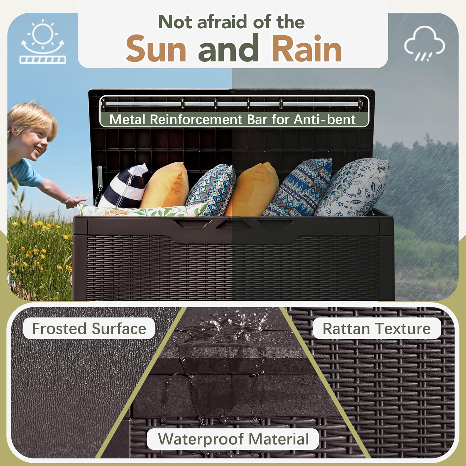 • [All-Weather Material] Deck box is made of premium Resin, featured with waterproof and UV resistant which protects its exterior from fading and keeps its interior dry. Suitable for long time outdoor using