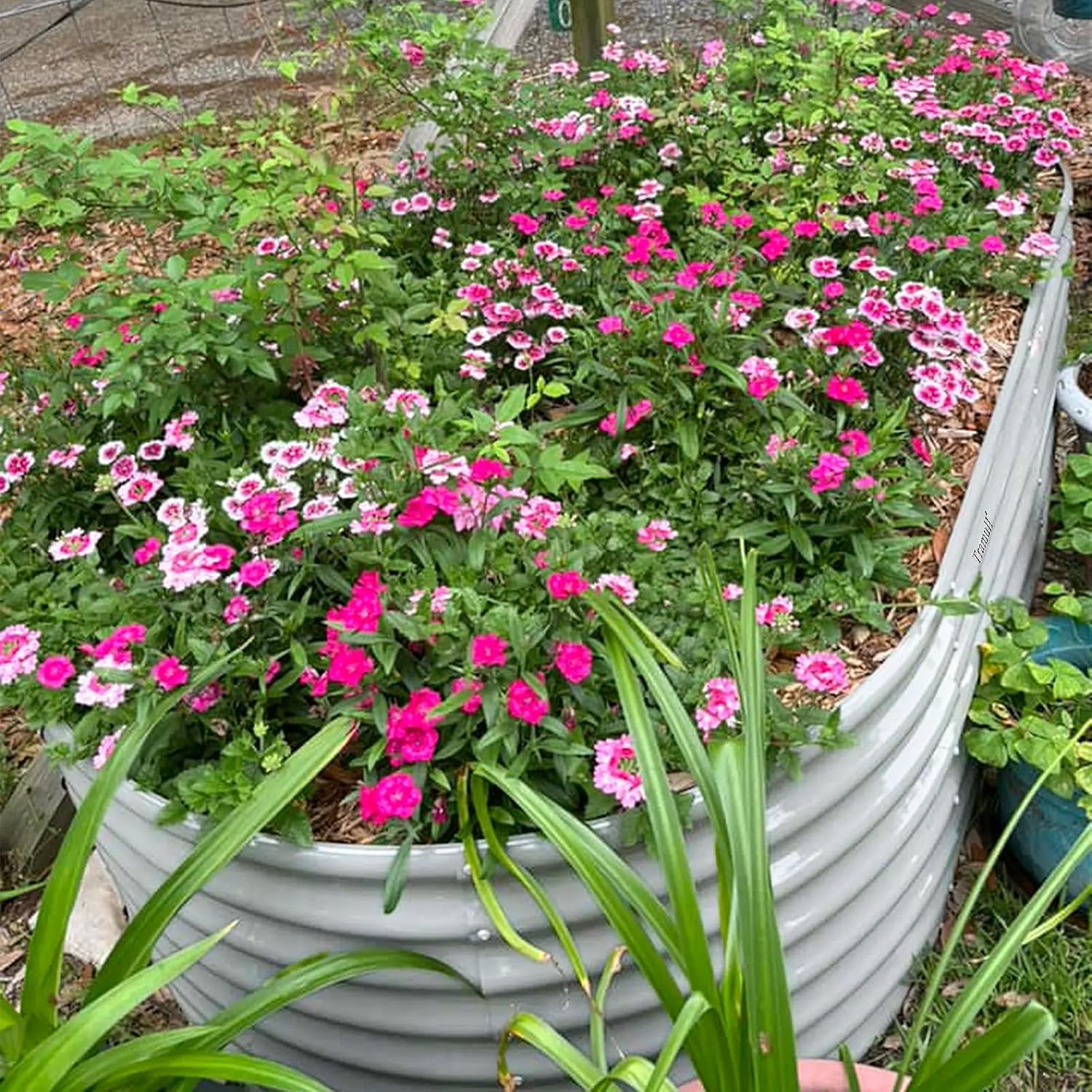 • 【Safety Features】①Anti-rust Coating, do not contaminate soil, safe for plants and humans; ②Oval shape, the raised planter box has rounded corner; ③Thickened crimped edge design, no sharp edges, smooth to the touch; ④ Gloves included; will not hurt your hand when installing or planting