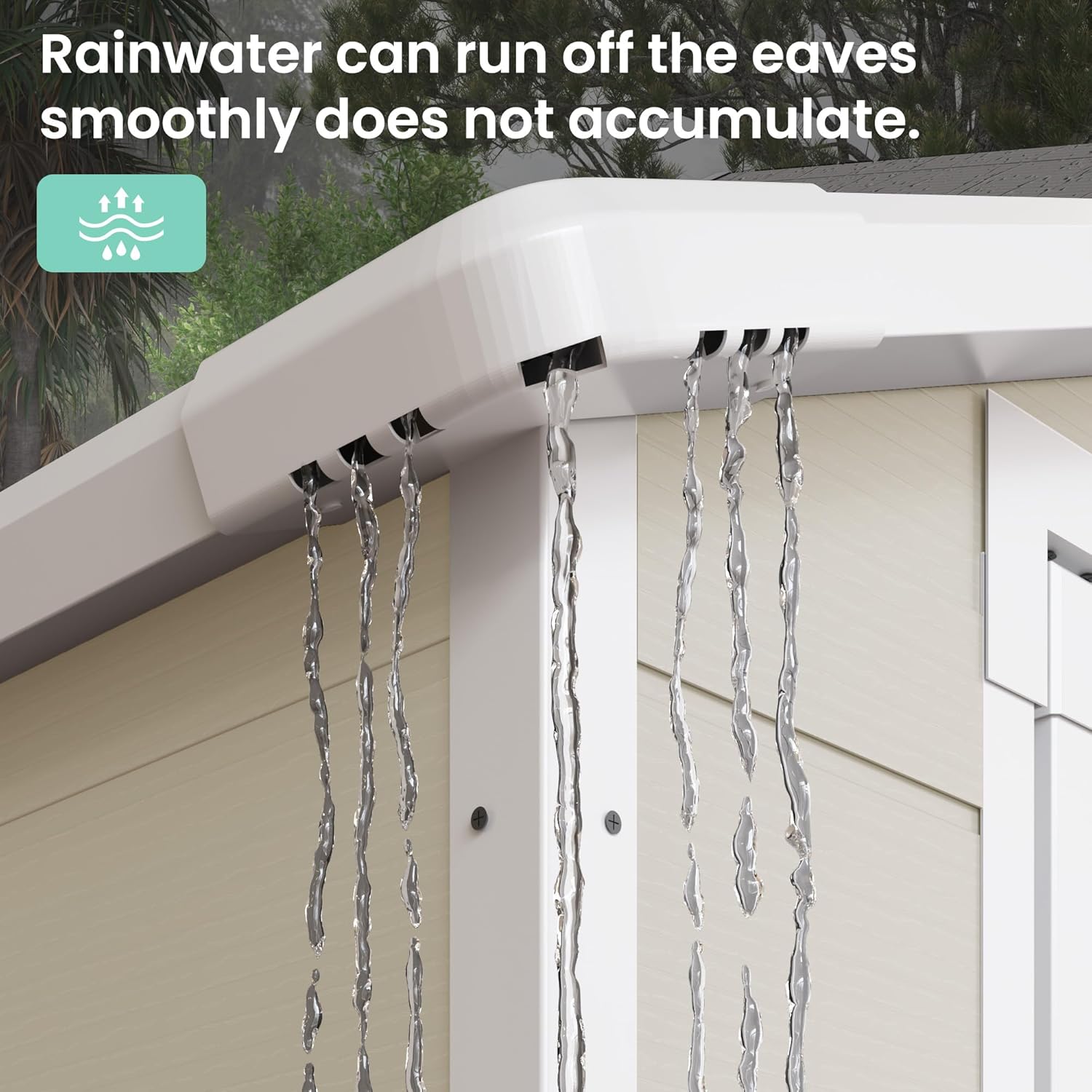 • RECYCLABLE RESIN MATERIAL:Our storage shed is crafted with 12 MM premium polypropylene resin plastic, which is recyclable. Resin shed is corrosion-resistant, waterproof, rustproof and with UV protection for more than 8000 hours, less bending and puncturing, worry-free for use in all weather conditions. It can be used daily for five years without fading