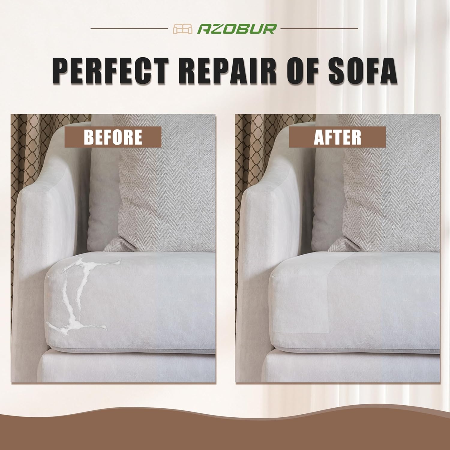 Azobur Fabric Couch Repair Patch 8.3 x 11 inches,Self-Adhesive Fabric Repair Patch for Furniture,Handbag,Sofa,Car Seats-(Light Brown)