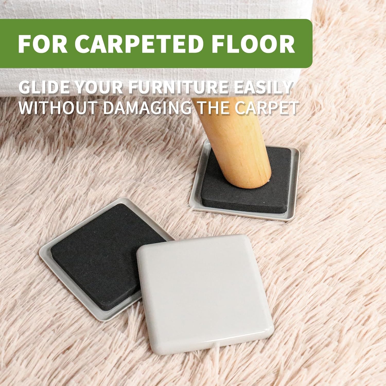 • Move Furniture Effortlessly - Our square heavy furniture sliders for carpet surfaces move easily across the surfaces of carpets and rugs. These couch sliders for moving furniture make cleaning or rearranging your furniture a one-person job. Move bulky and heavy objects with convenience. Furniture carpet sliders perfects for both round and square furniture legs and provide lasting protection with bottom furniture movers sliders.